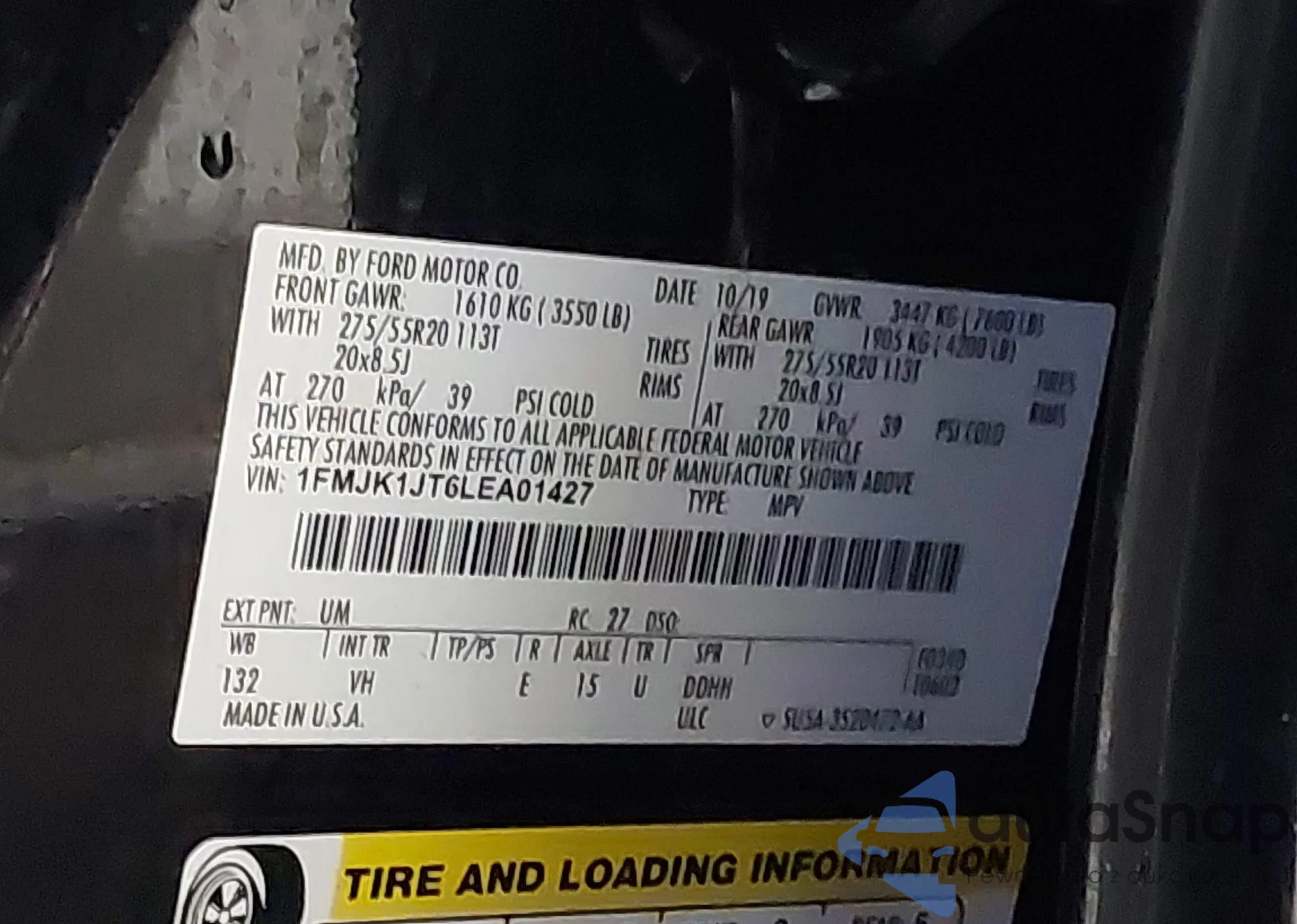 VIN: 1FMJK1JT6LEA01427