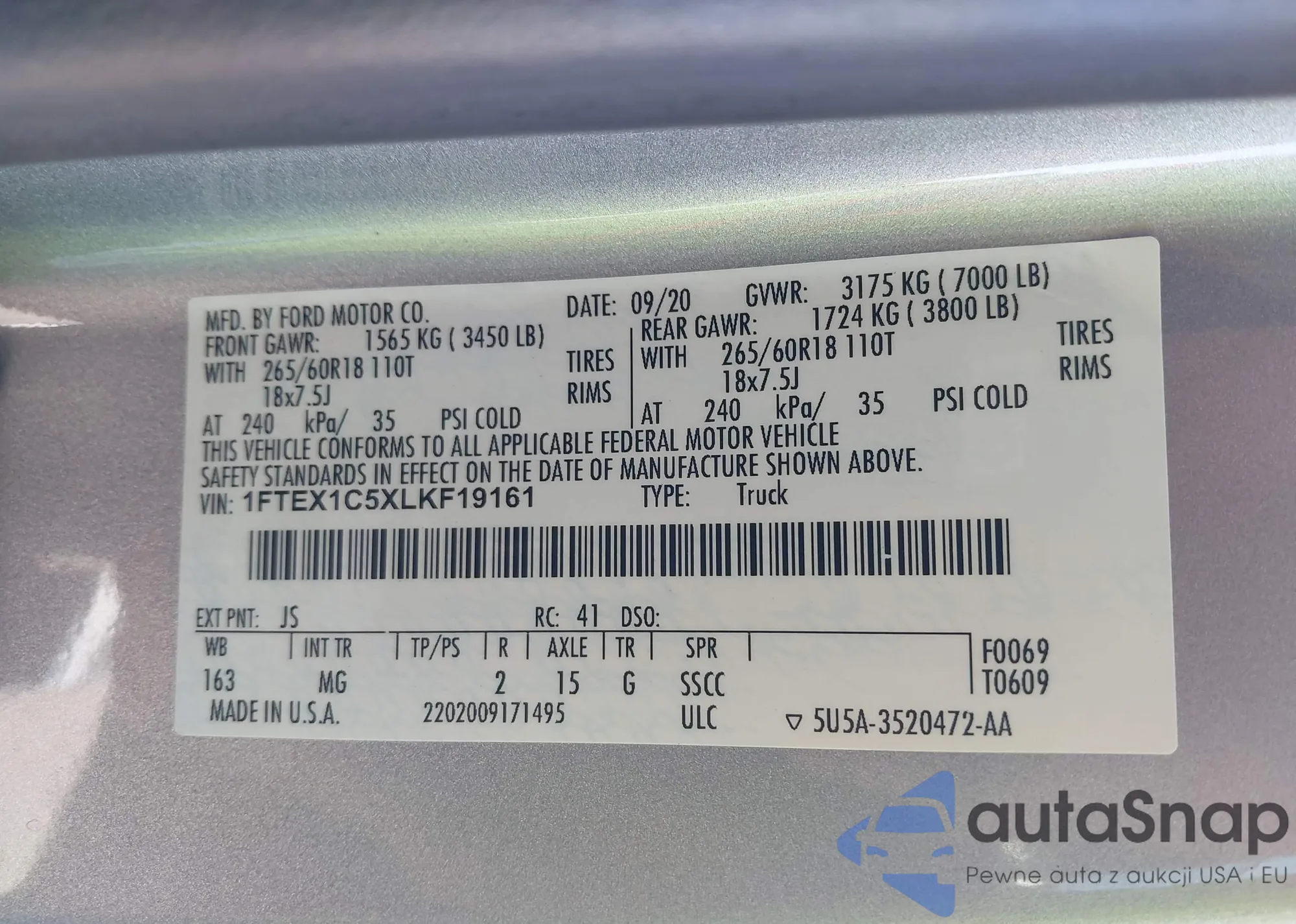 Ford F-150 2020 – Historia pojazdu (sprzedany na IAAI)