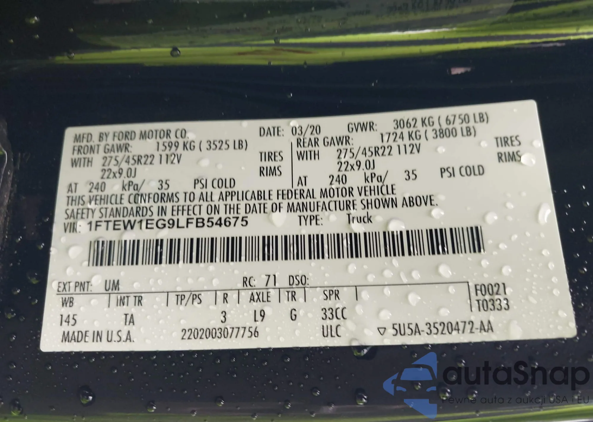 Ford F-150 2020 – Historia pojazdu (sprzedany na IAAI)
