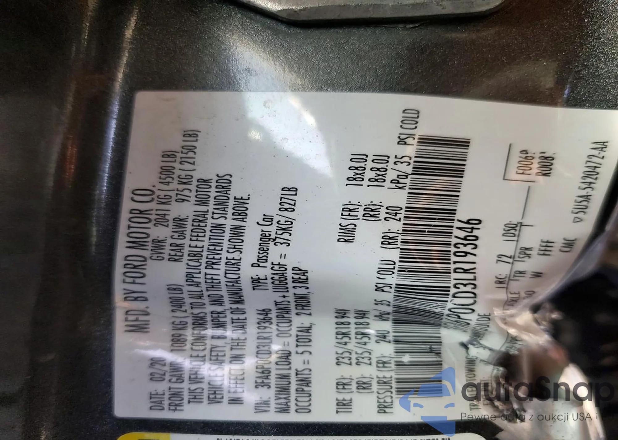 • VIN: 3FA6P0CD3LR193646