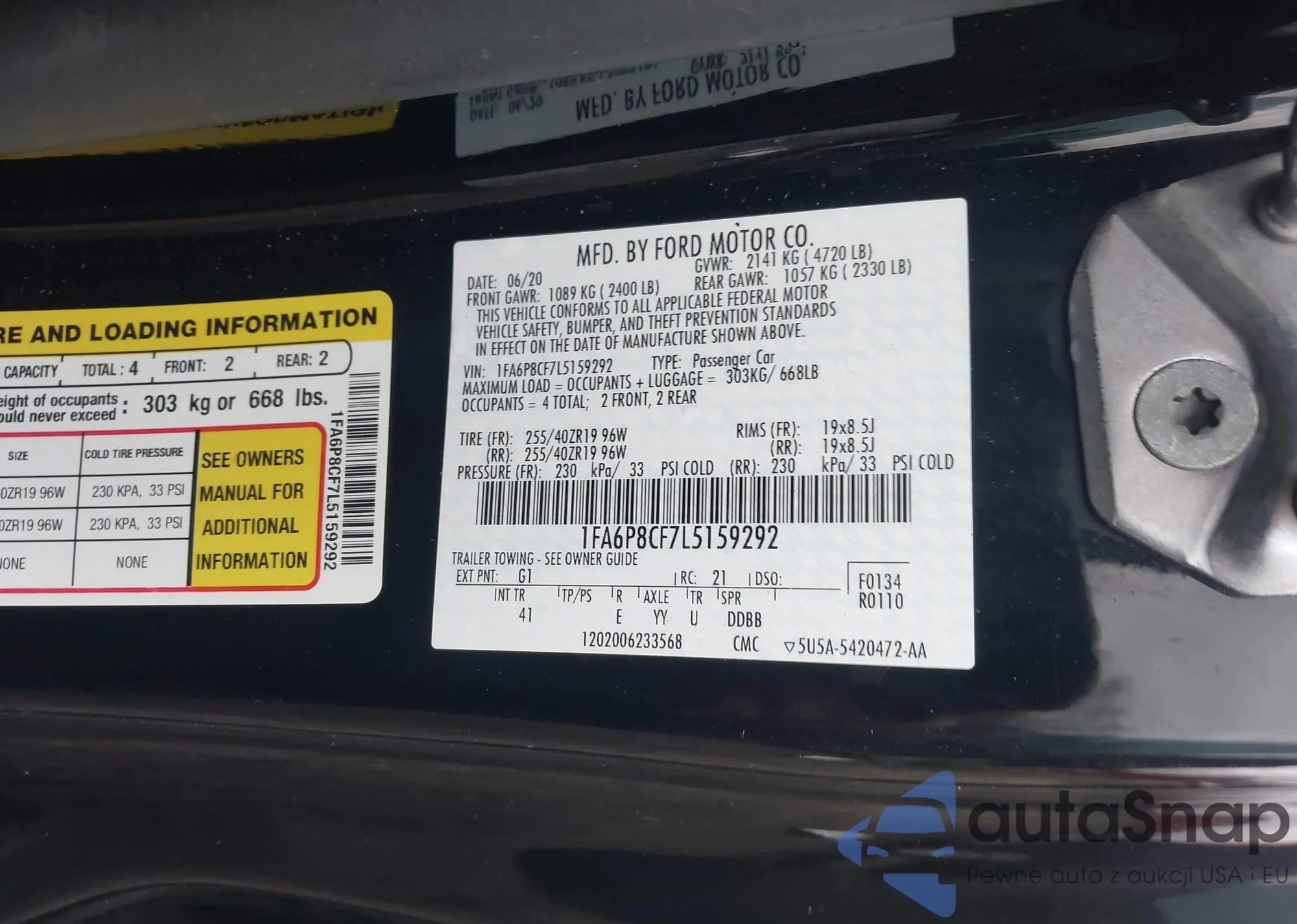 Samochód Ford Mustang 2020 (VIN 1FA6P8CF7L5159292) nie był wcześniej licytowany. Dokumenty są czyste, przebieg odpowiada lub jest niższy niż średnia rynku. Sprzedaje go firma ubezpieczeniowa – polecamy zakup. Dostawa do portu zajmie ok. 6–8 tygodni.