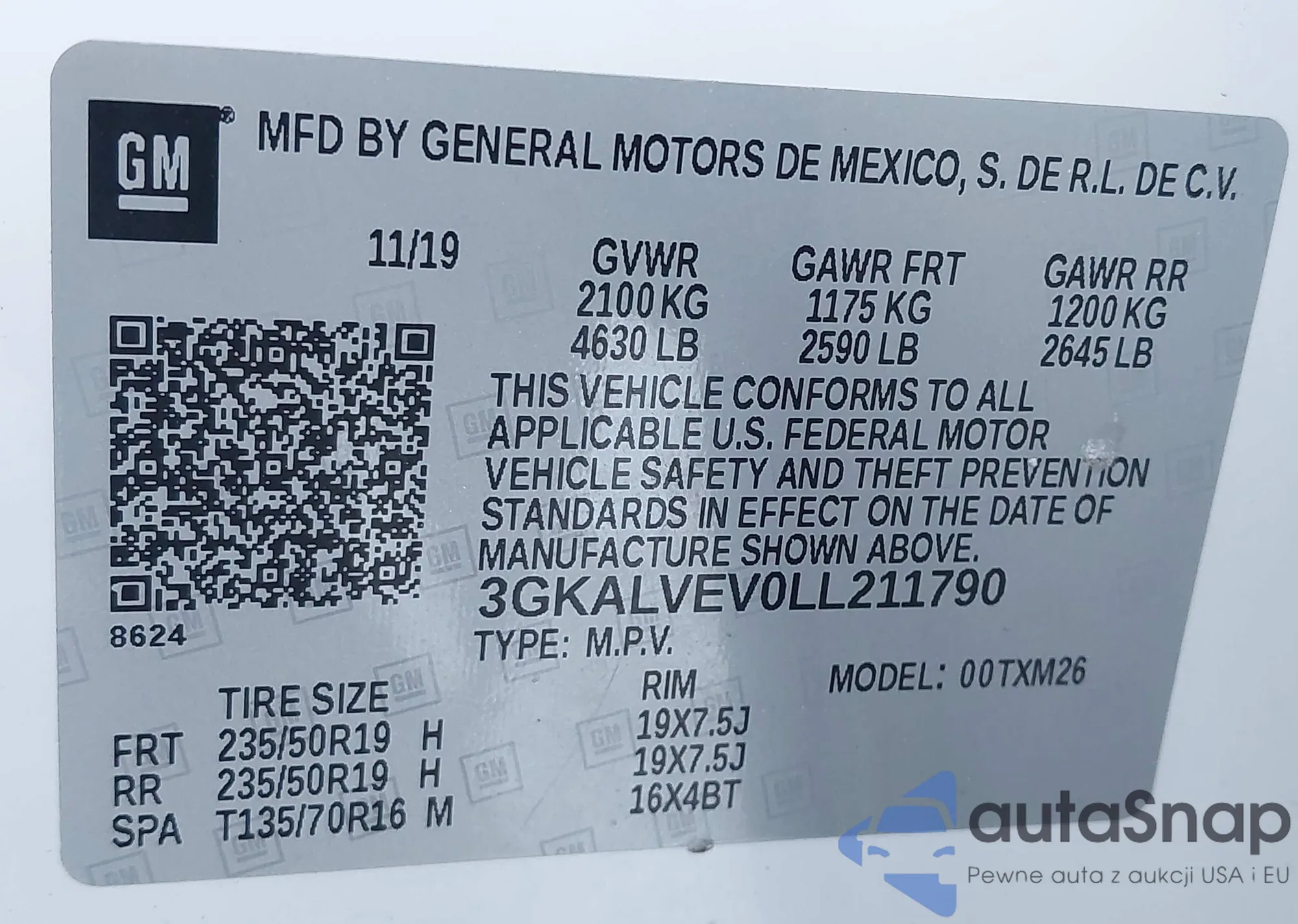 • VIN: 3GKALVEV0LL211790