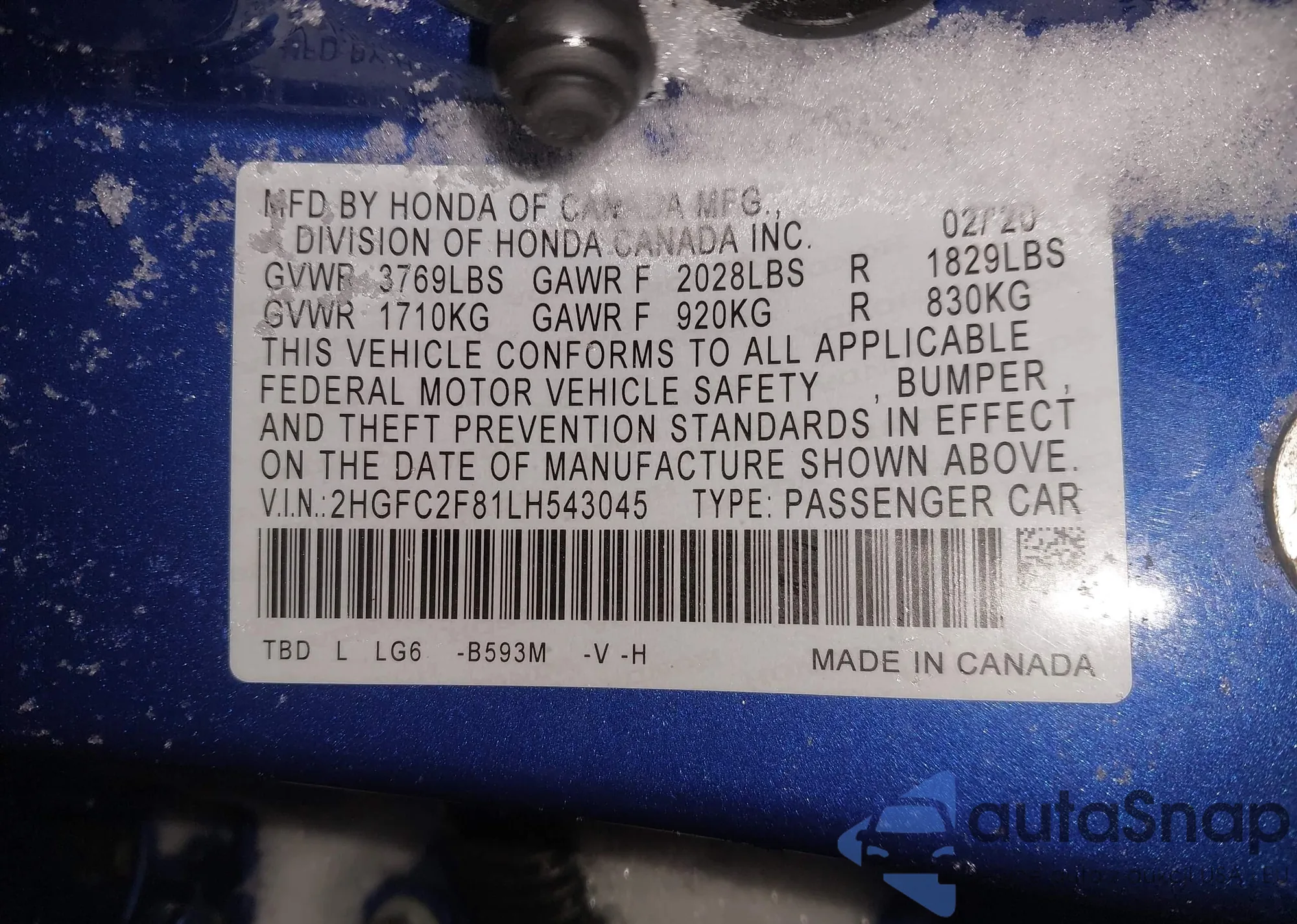 Samochód Honda Civic 2020 (VIN 2HGFC2F81LH543045) nie był wcześniej licytowany. Dokumenty są czyste, przebieg odpowiada lub jest niższy niż średnia rynku. Sprzedaje go firma ubezpieczeniowa – polecamy zakup. Dostawa do portu zajmie ok. 6–8 tygodni.
