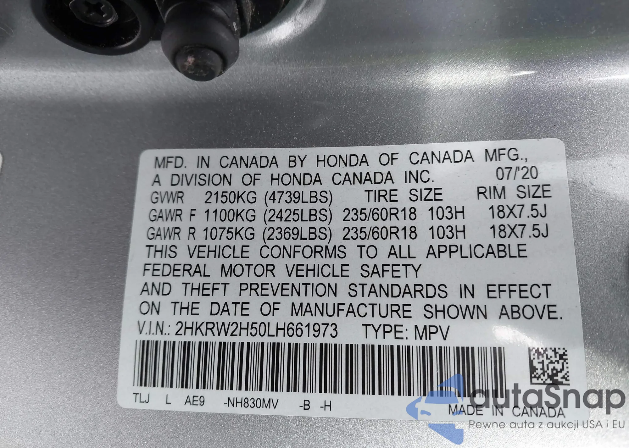 VIN: 2HKRW2H50LH661973