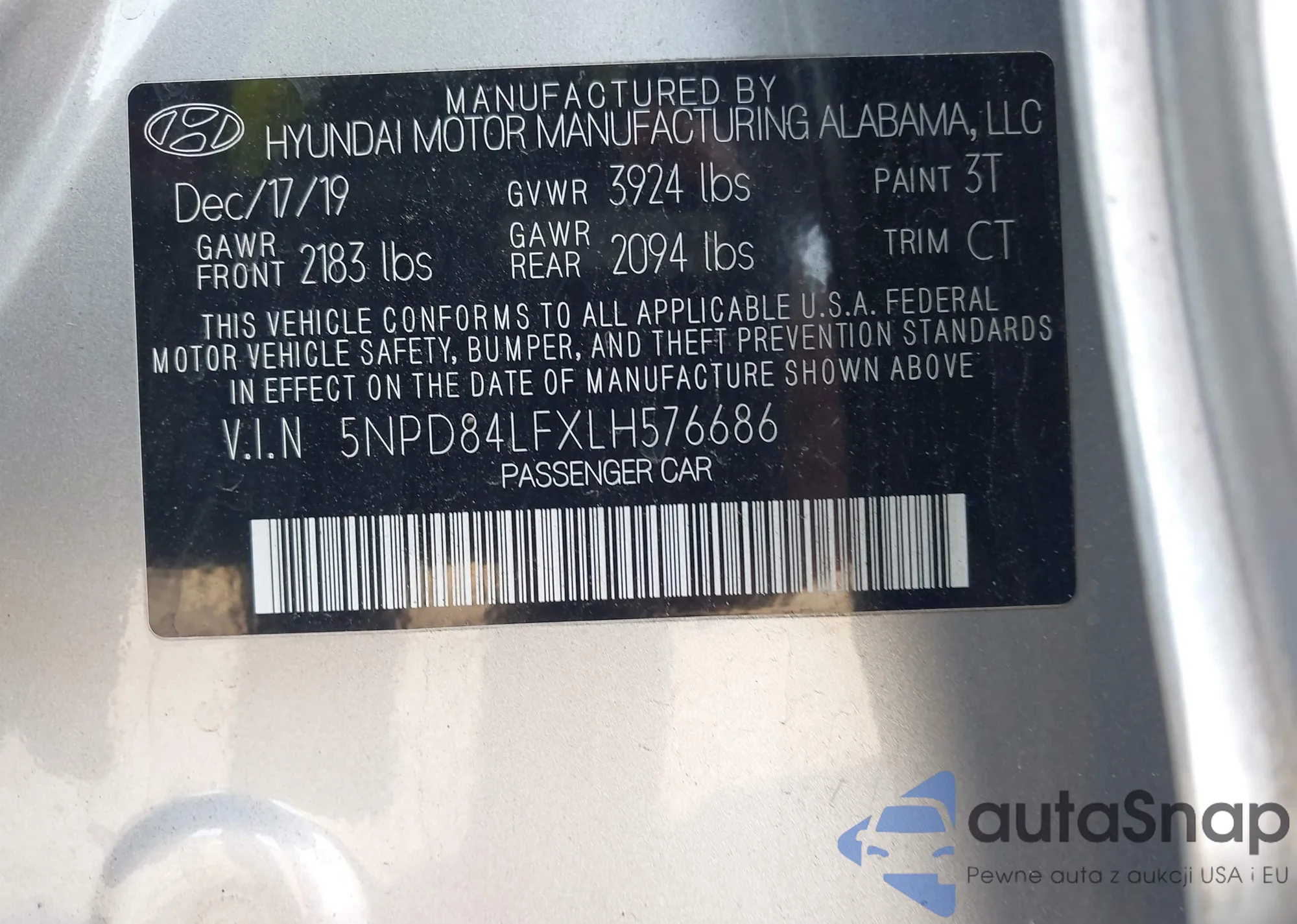 • VIN: 5NPD84LFXLH576686