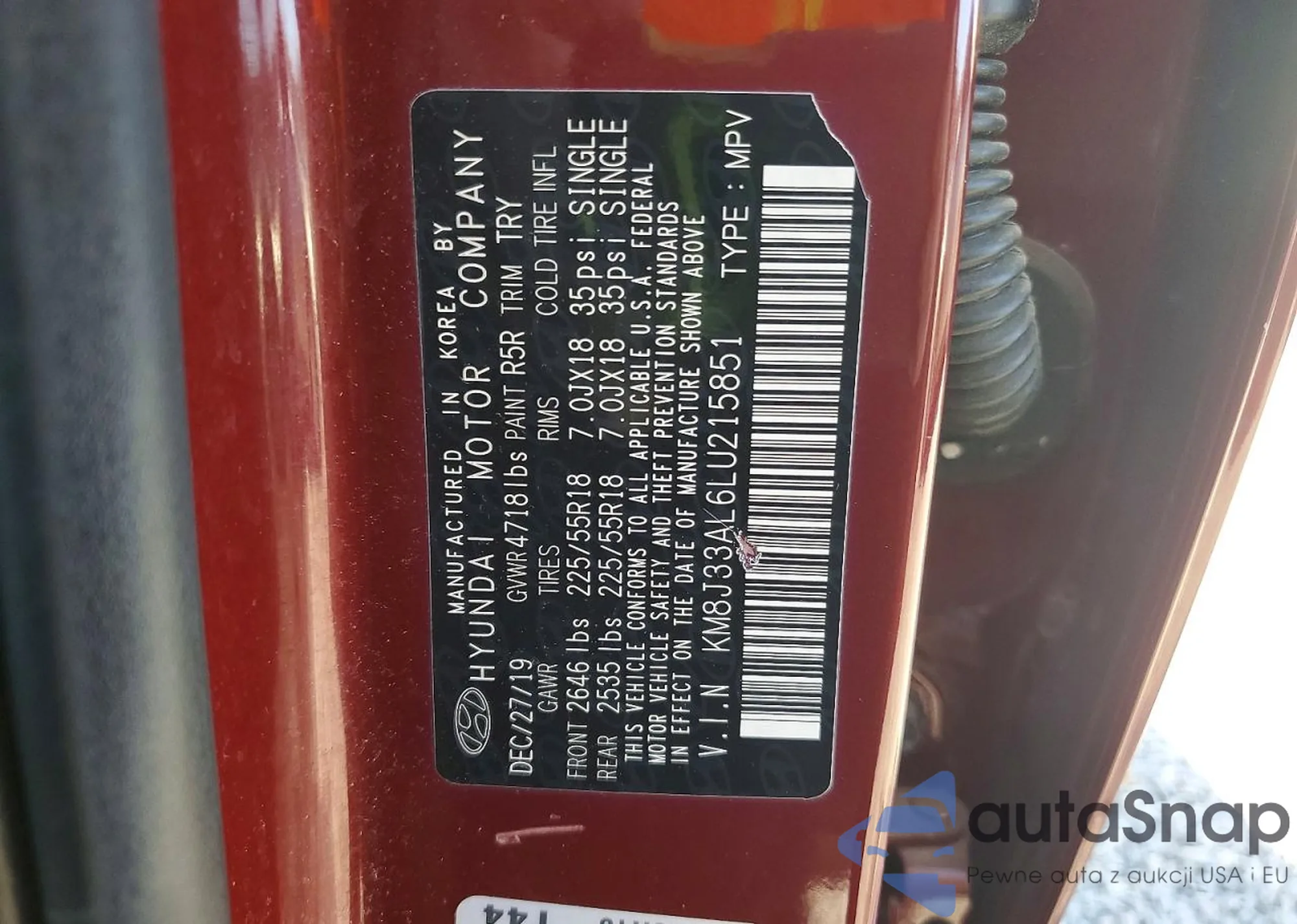 • VIN: KM8J33AL6LU215851