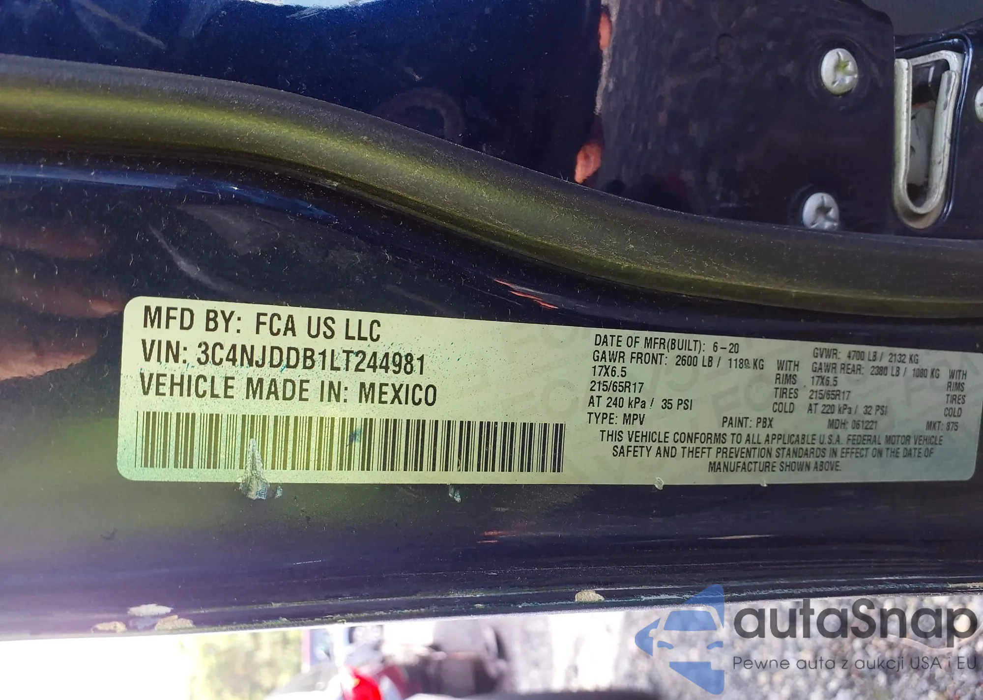 • VIN: 3C4NJDDB1LT244981