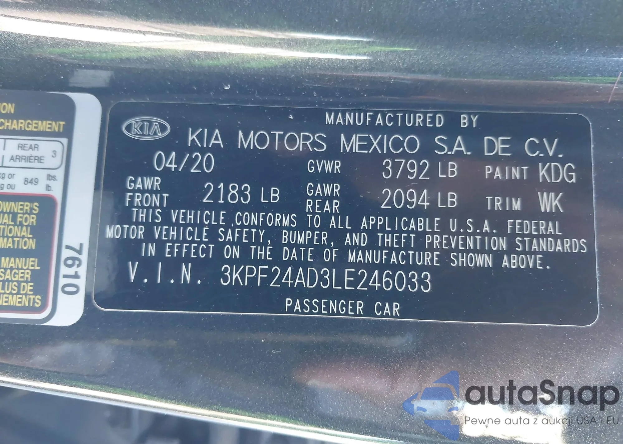 Samochód Kia Forte 2020 (VIN 3KPF24AD3LE246033) nie był wcześniej licytowany. Dokumenty są czyste, przebieg odpowiada lub jest niższy niż średnia rynku. Sprzedaje go firma ubezpieczeniowa – polecamy zakup. Dostawa do portu zajmie ok. 6–8 tygodni.