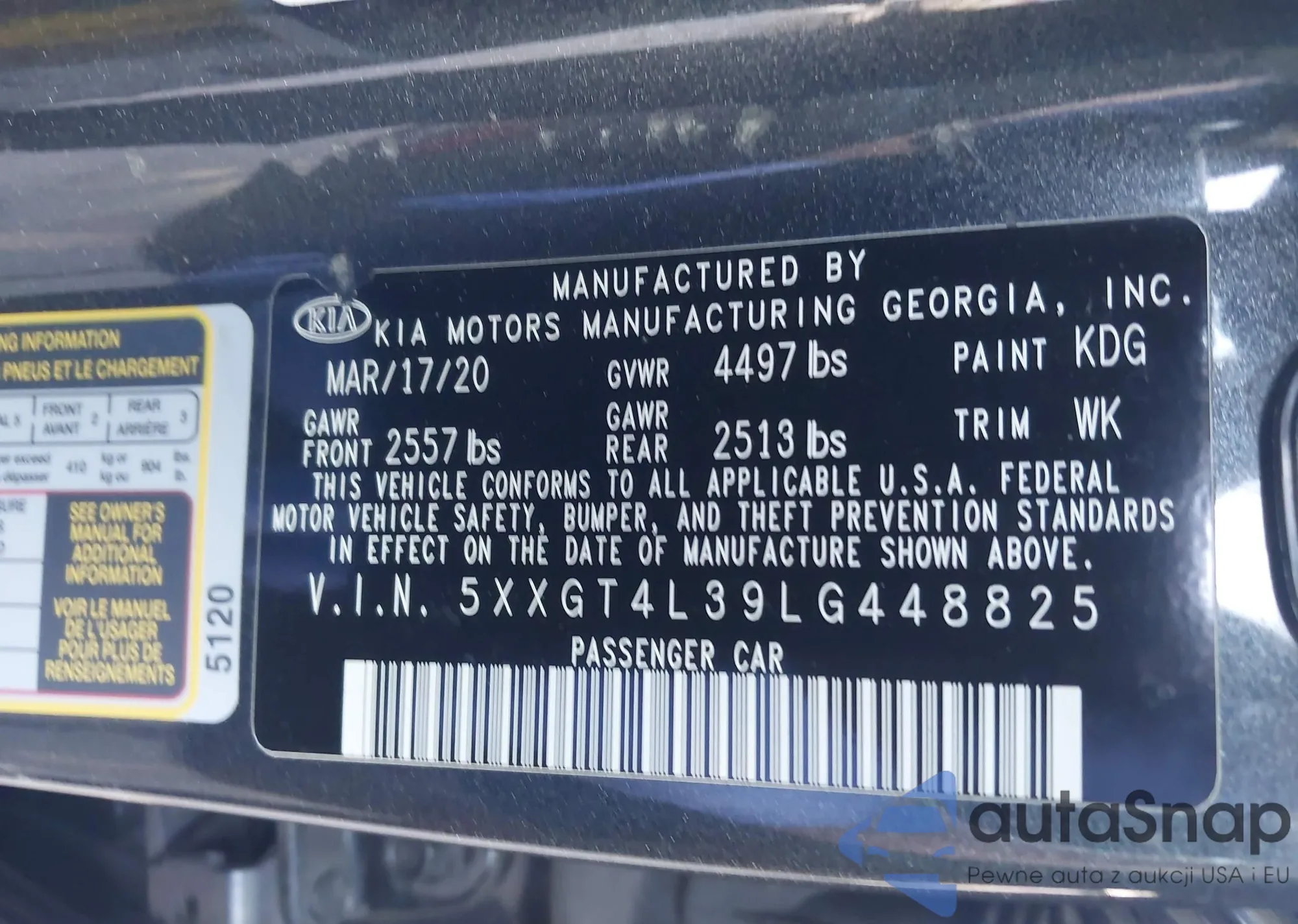 • VIN: 5XXGT4L39LG448825