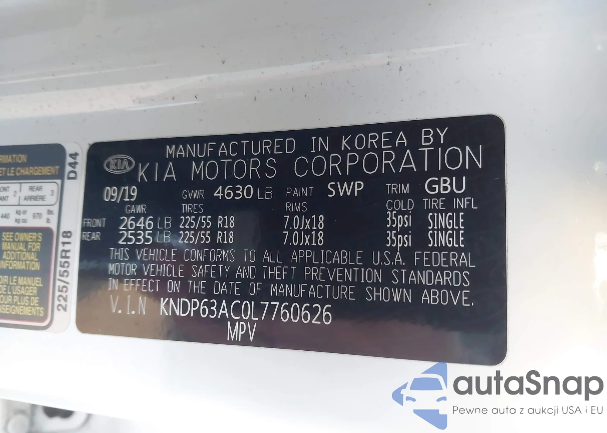 Samochód Kia Sportage 2020 (VIN KNDP63AC0L7760626) nie był wcześniej licytowany. Dokumenty są czyste, przebieg odpowiada lub jest niższy niż średnia rynku. Sprzedaje go firma ubezpieczeniowa – polecamy zakup. Dostawa do portu zajmie ok. 6–8 tygodni.