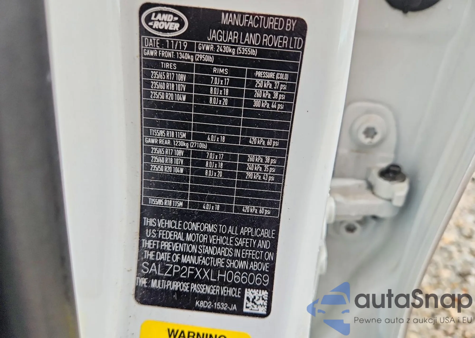 Samochód Land Rover Range Rover 2020 (VIN SALZP2FXXLH066069) sprzedaje go niezweryfikowany sprzedawca. Zalecamy raport Carfax i potwierdzenie możliwości rejestracji pojazdu przed zakupem.