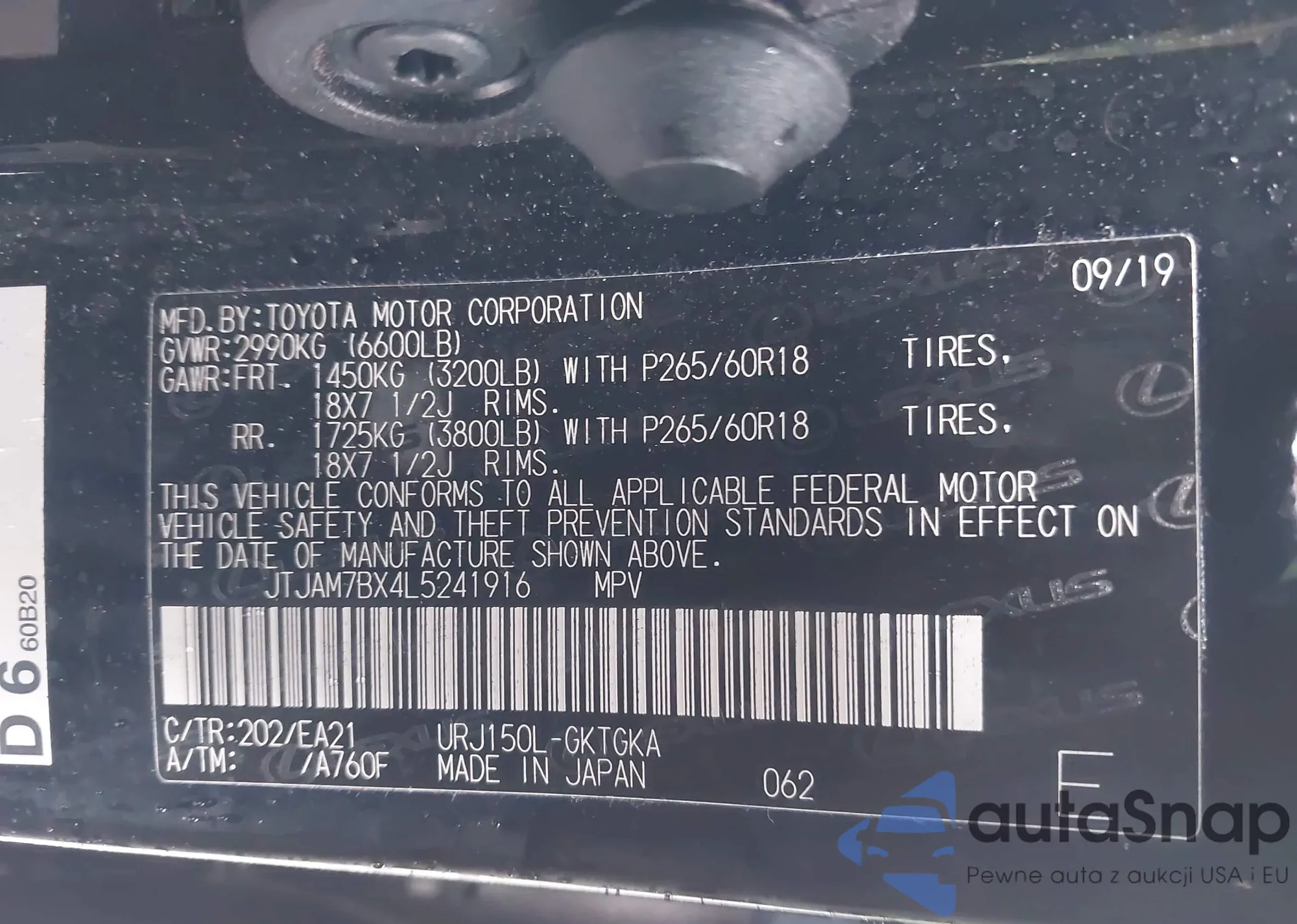 • VIN: JTJAM7BX4L5241916