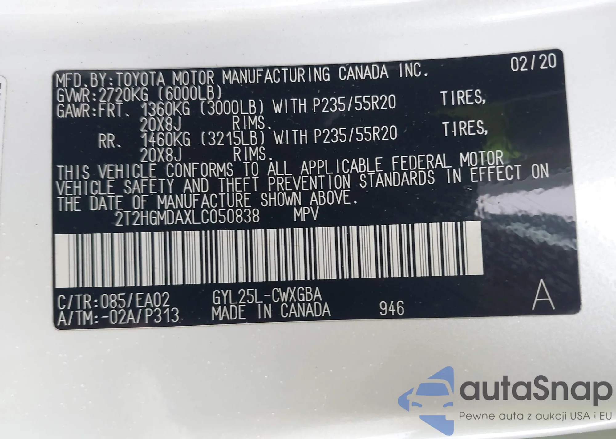 2T2HGMDAXLC050838 IAAI