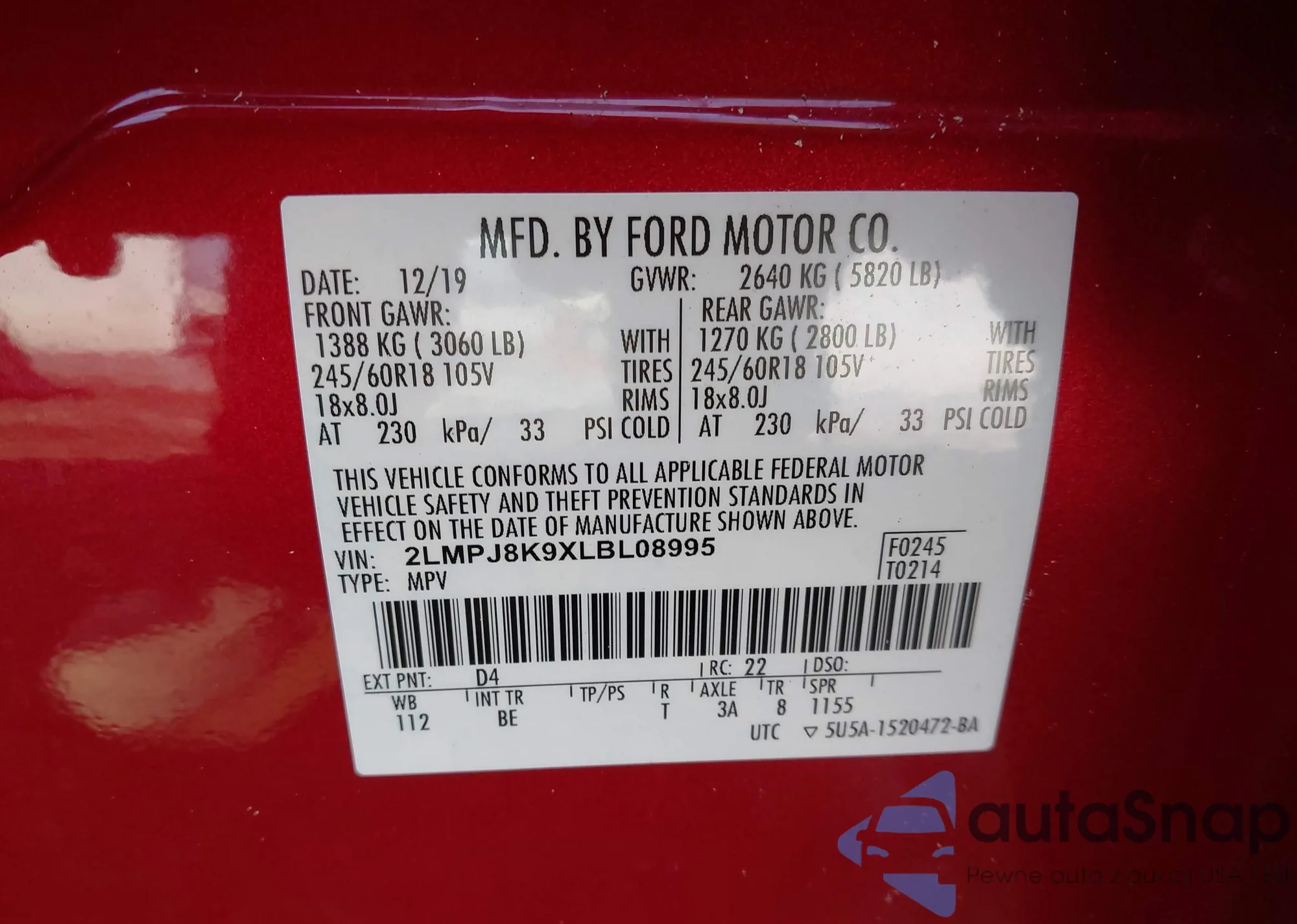 • VIN: 2LMPJ8K9XLBL08995