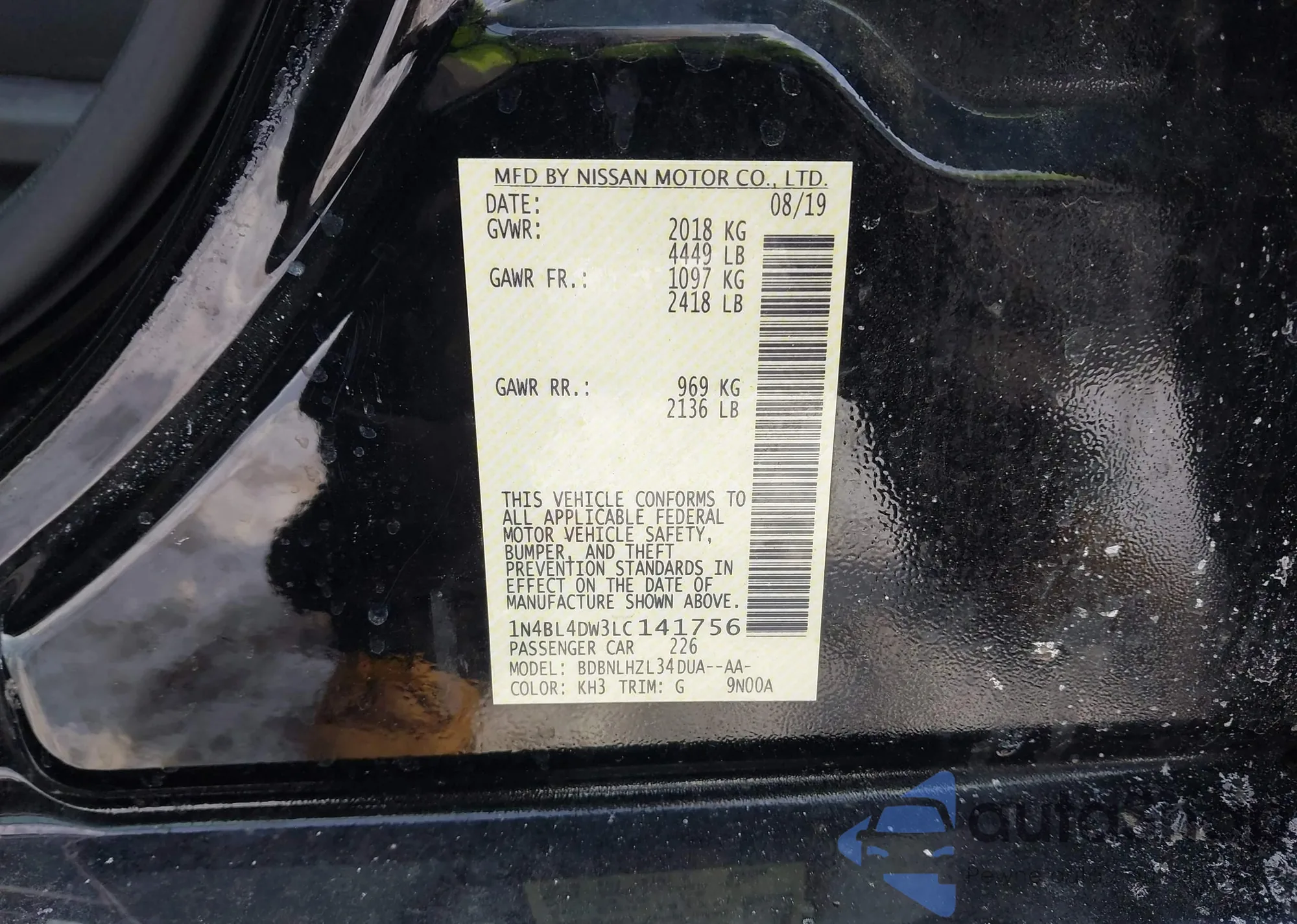 • VIN: 1N4BL4DW3LC141756