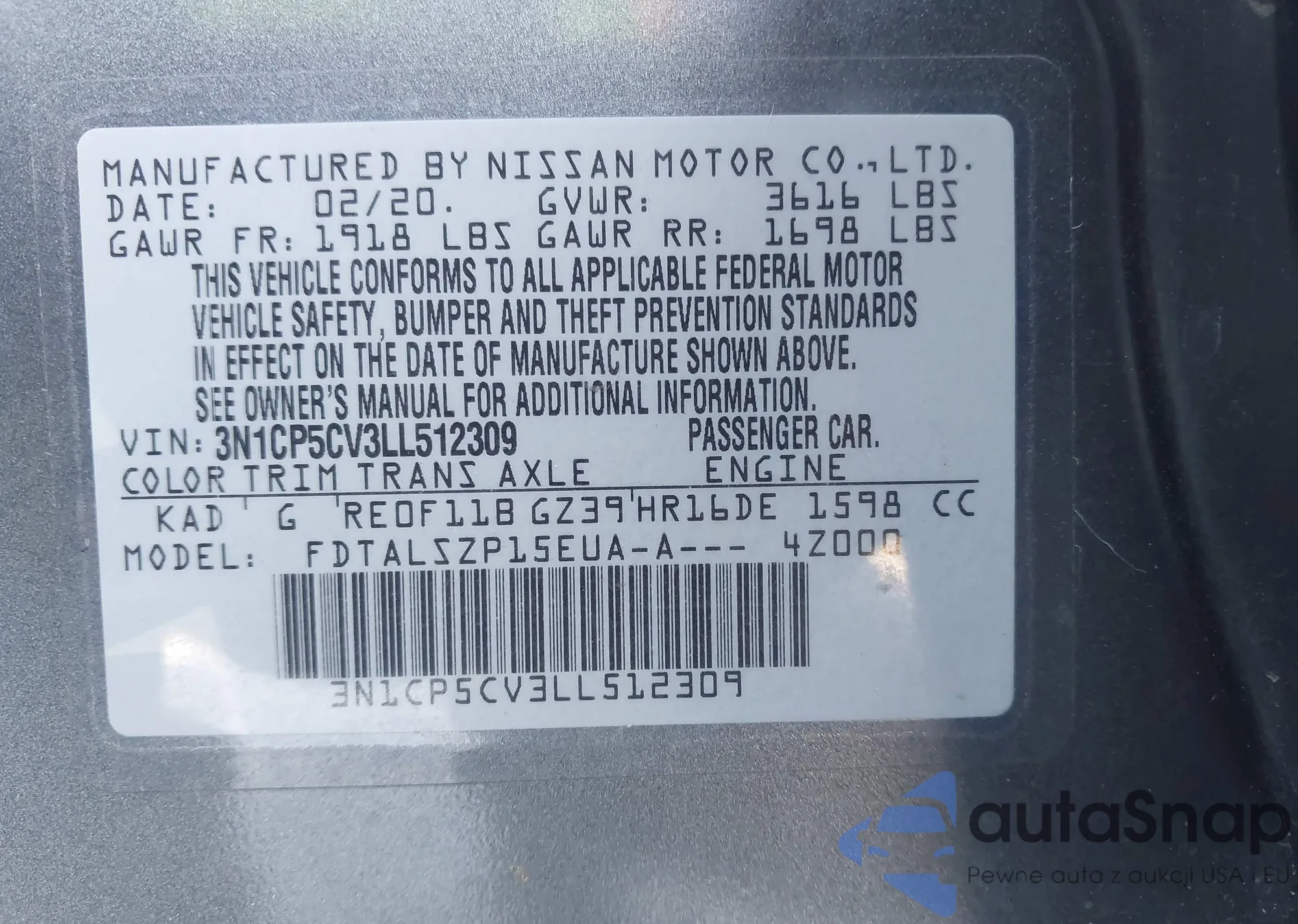 VIN: 3N1CP5CV3LL512309
