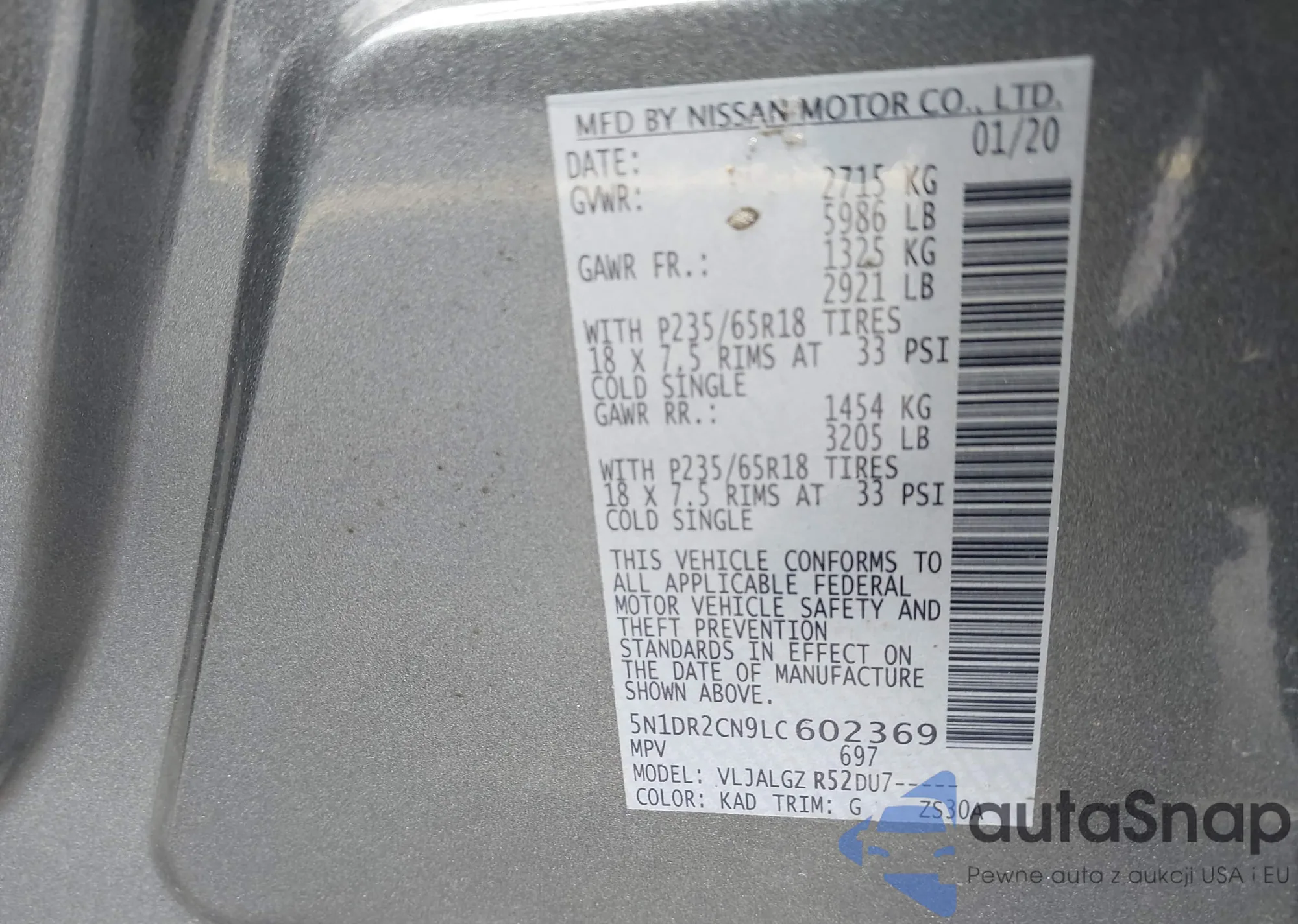 Samochód Nissan Pathfinder 2020 (VIN 5N1DR2CN9LC602369) ma dokumenty uniemożliwiające rejestrację. Mogą pojawić się trudności przy eksporcie i rejestracji. Skontaktuj się z ekspertami AutaSnap w celu znalezienia alternatywy.