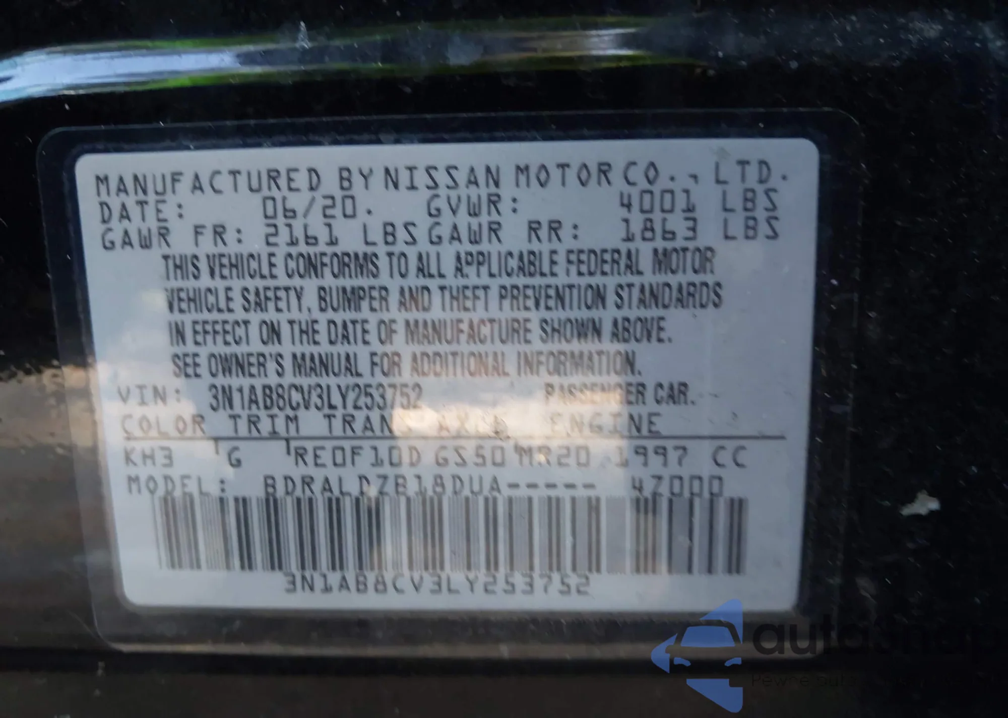 VIN: 3N1AB8CV3LY253752