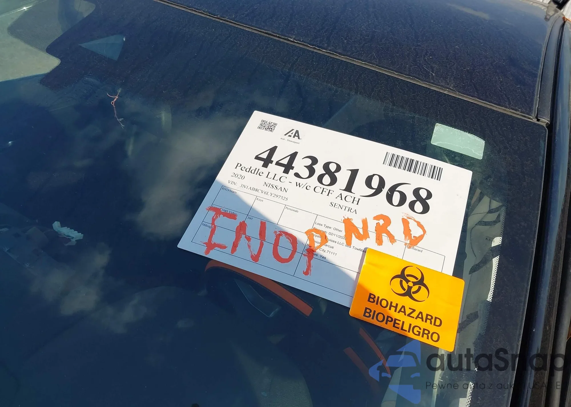 Samochód Nissan Sentra 2020 (VIN 3N1AB8CV6LY297325) sprzedaje go niezweryfikowany sprzedawca. Zalecamy raport Carfax i potwierdzenie możliwości rejestracji pojazdu przed zakupem.