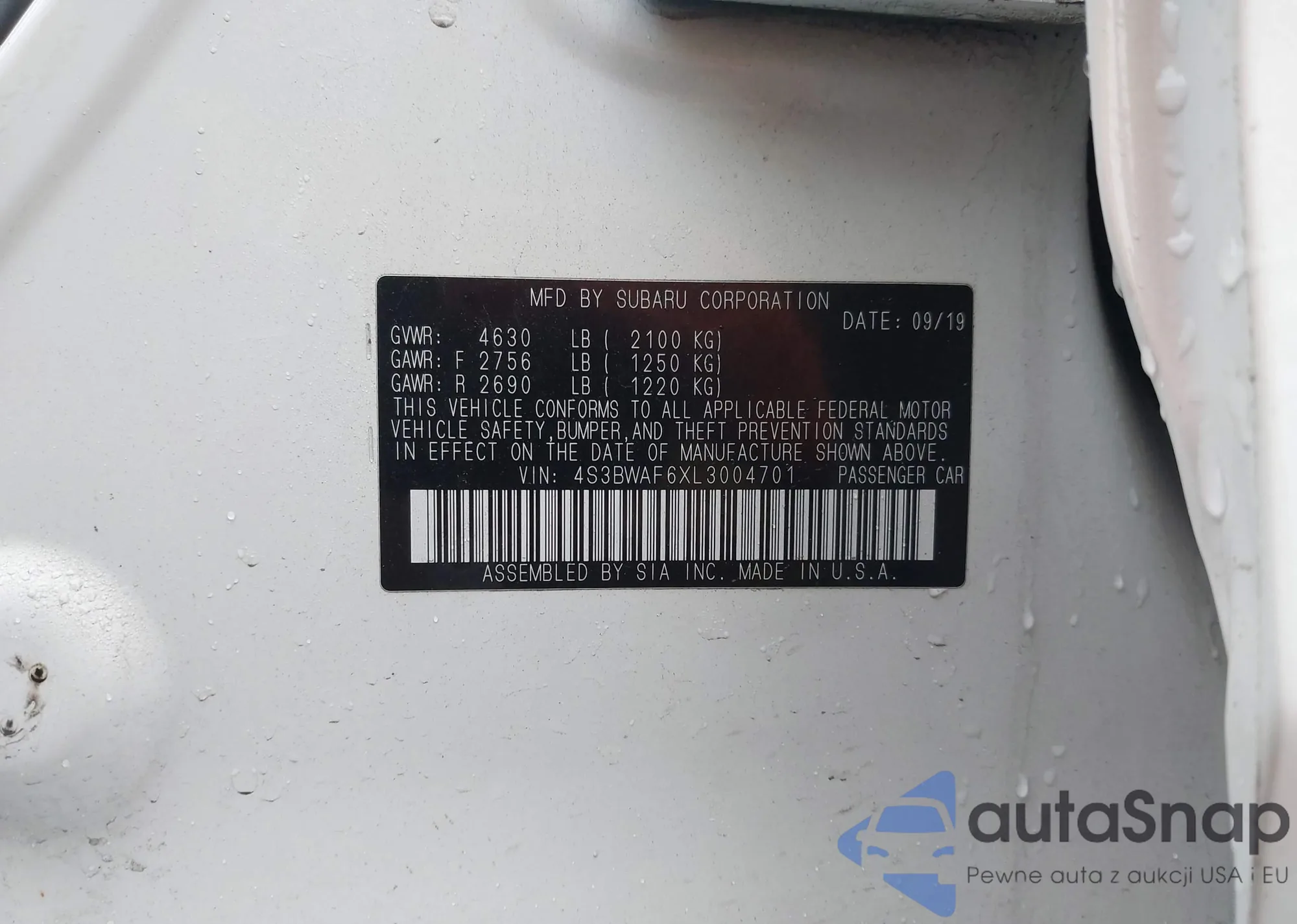 VIN: 4S3BWAF6XL3004701