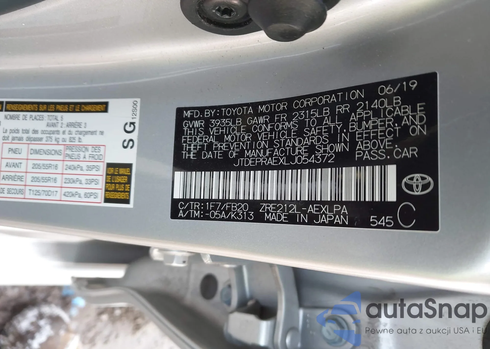• VIN: JTDEPRAEXLJ054372