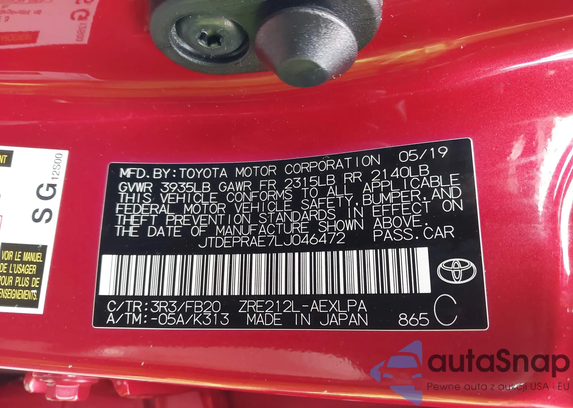 VIN: JTDEPRAE7LJ046472