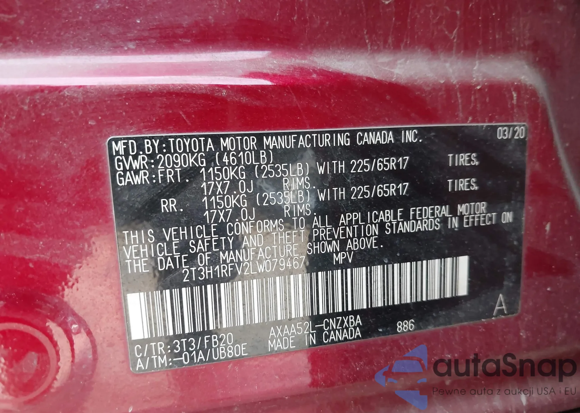 • VIN: 2T3H1RFV2LW079467