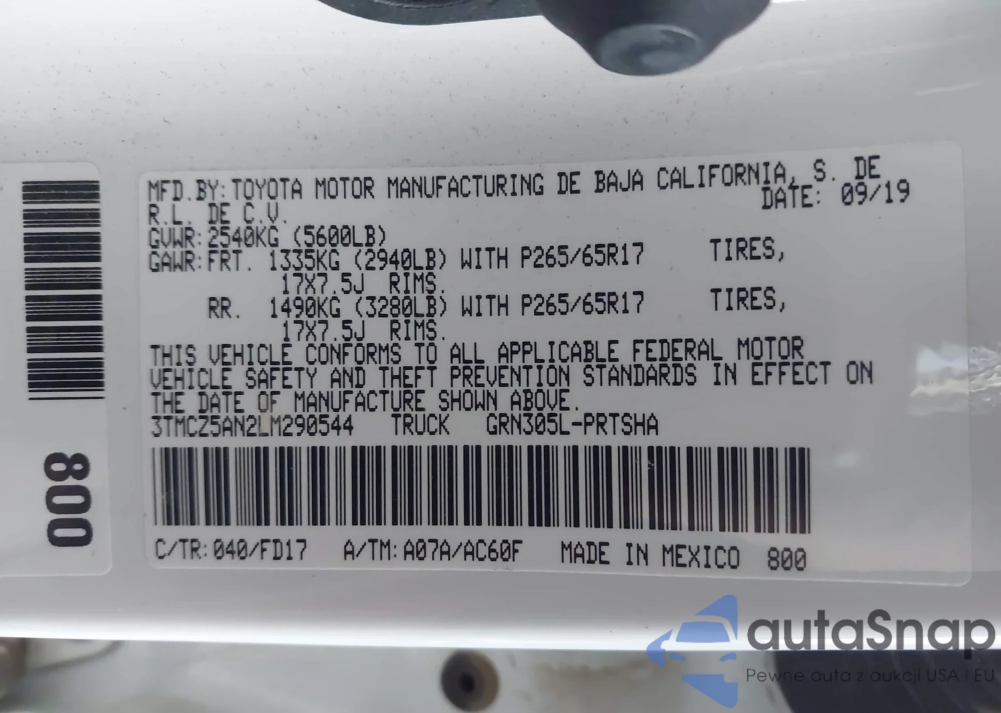 Samochód Toyota Tacoma 2020 (VIN 3TMCZ5AN2LM290544) nie był wcześniej licytowany. Dokumenty są czyste, przebieg odpowiada lub jest niższy niż średnia rynku. Sprzedaje go firma ubezpieczeniowa – polecamy zakup. Dostawa do portu zajmie ok. 6–8 tygodni.