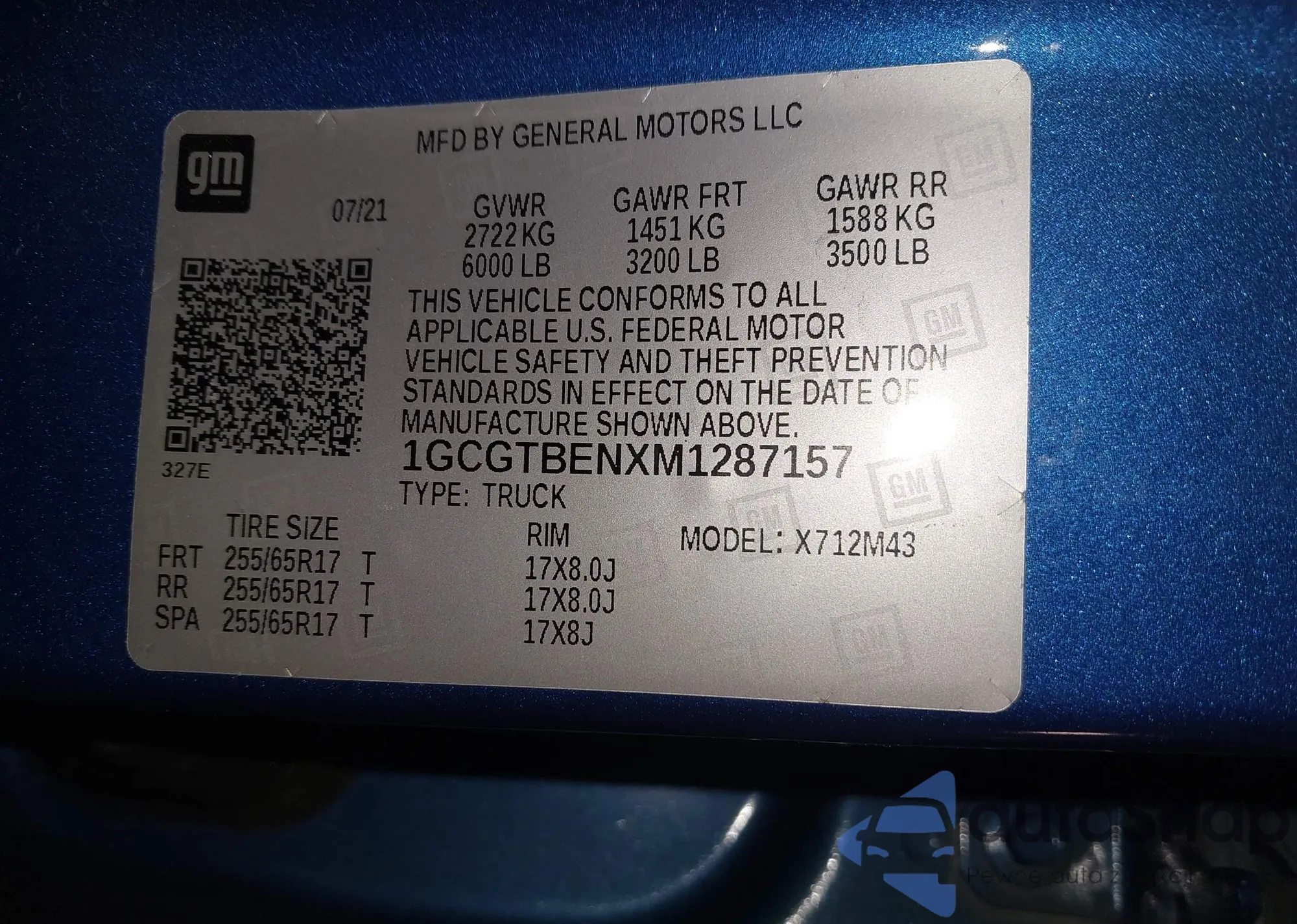 • VIN: 1GCGTBENXM1287157