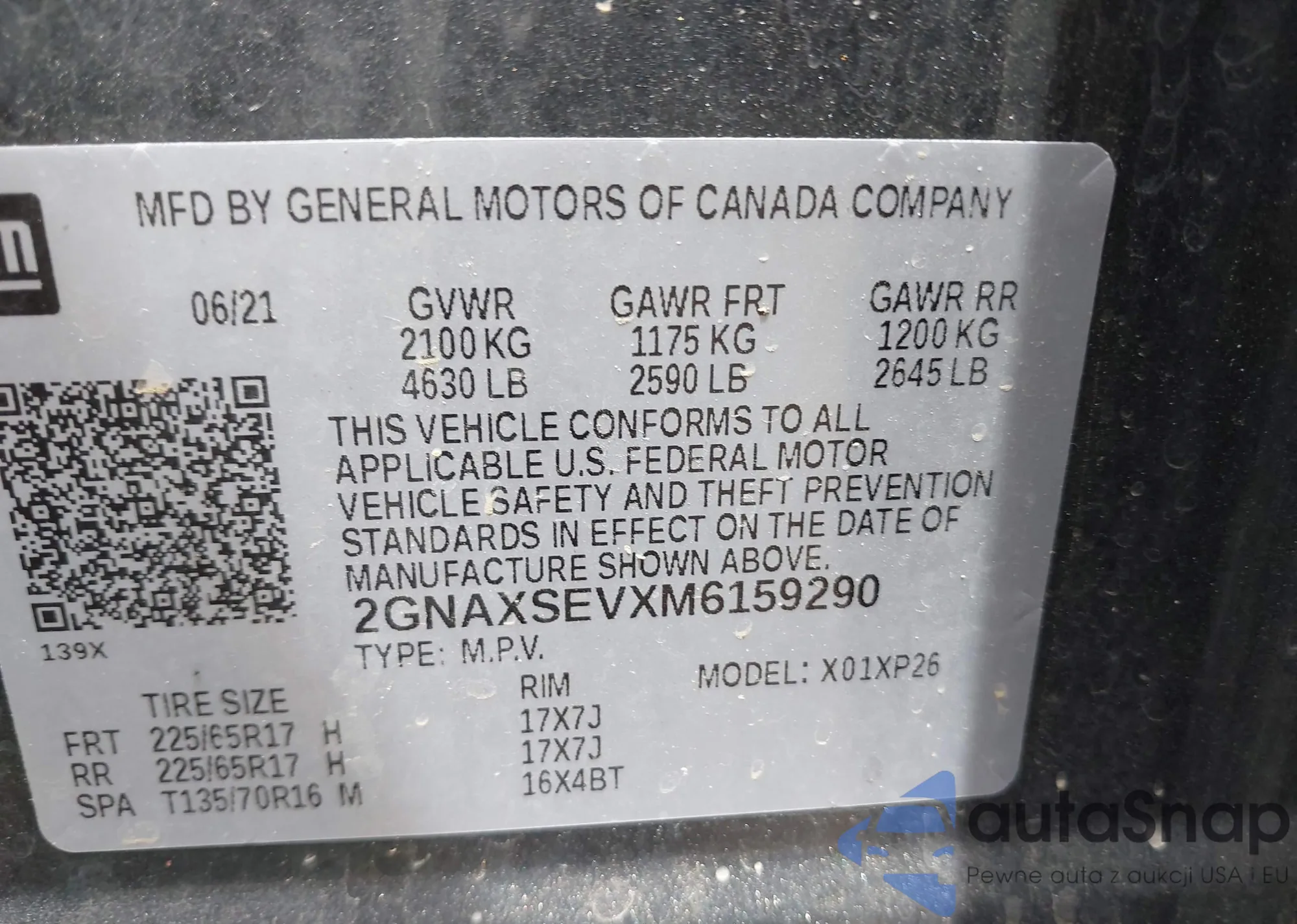VIN: 2GNAXSEVXM6159290