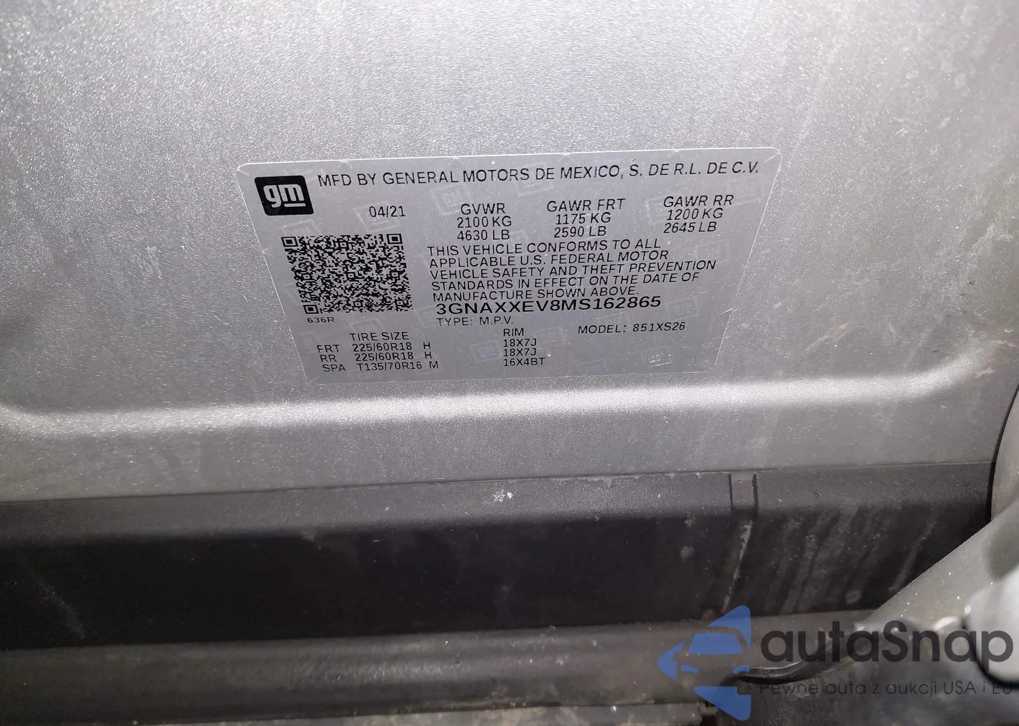 • VIN: 3GNAXXEV8MS162865