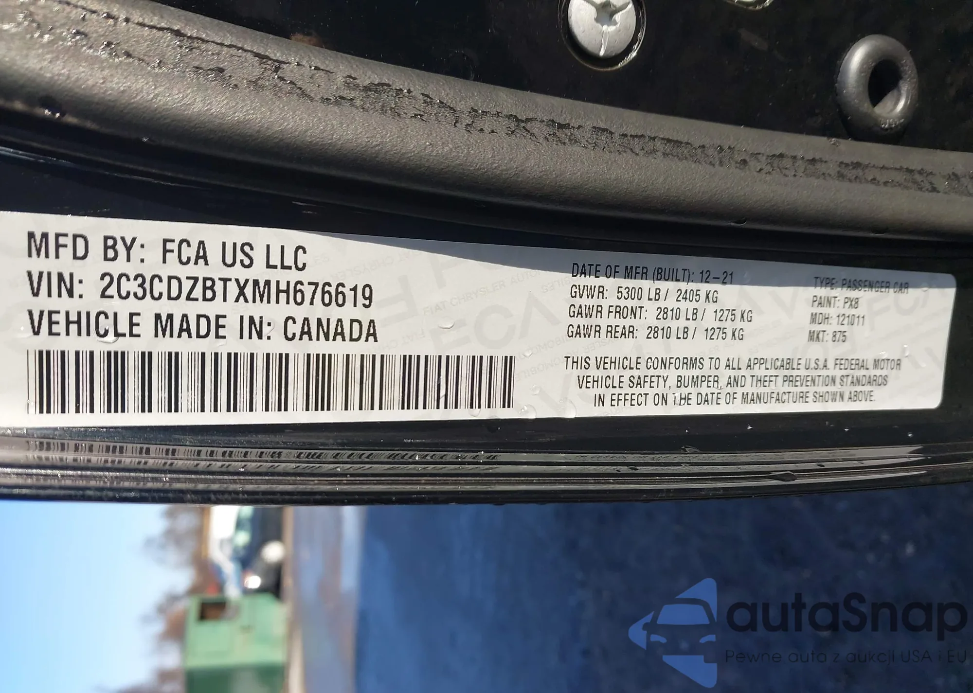 Samochód Dodge Challenger 2021 (VIN 2C3CDZBTXMH676619) nie był wcześniej licytowany. Dokumenty są czyste, przebieg odpowiada lub jest niższy niż średnia rynku. Sprzedaje go firma ubezpieczeniowa – polecamy zakup. Dostawa do portu zajmie ok. 6–8 tygodni.
