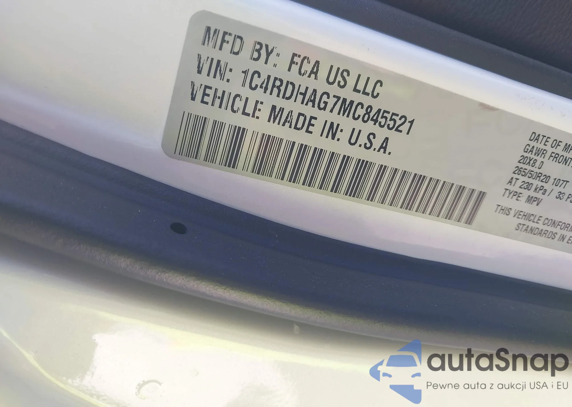 • VIN: 1C4RDHAG7MC845521
