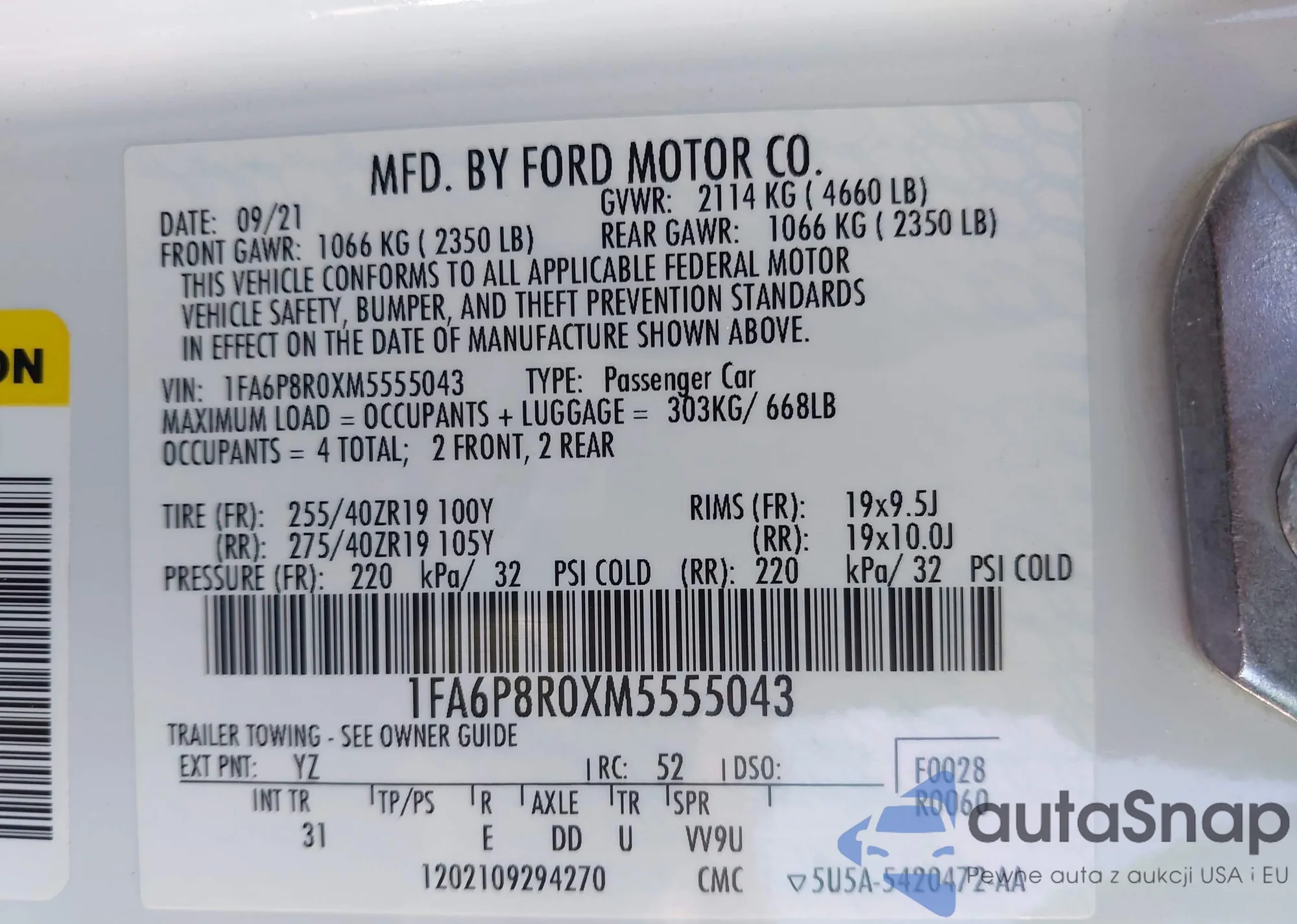 • VIN: 1FA6P8R0XM5555043