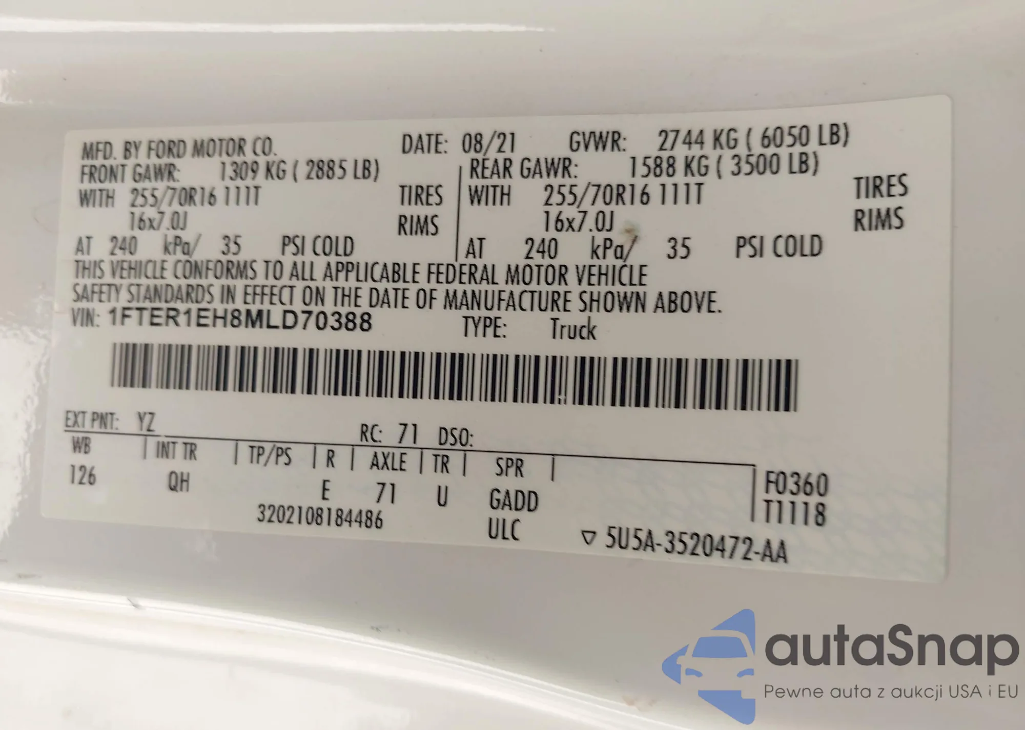 • VIN: 1FTER1EH8MLD70388