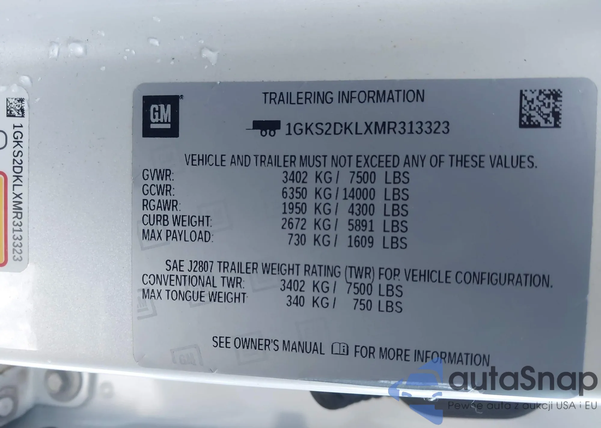 Samochód GMC Yukon 2021 (VIN 1GKS2DKLXMR313323) nie był wcześniej licytowany. Dokumenty są czyste, przebieg odpowiada lub jest niższy niż średnia rynku. Sprzedaje go firma ubezpieczeniowa – polecamy zakup. Dostawa do portu zajmie ok. 6–8 tygodni.