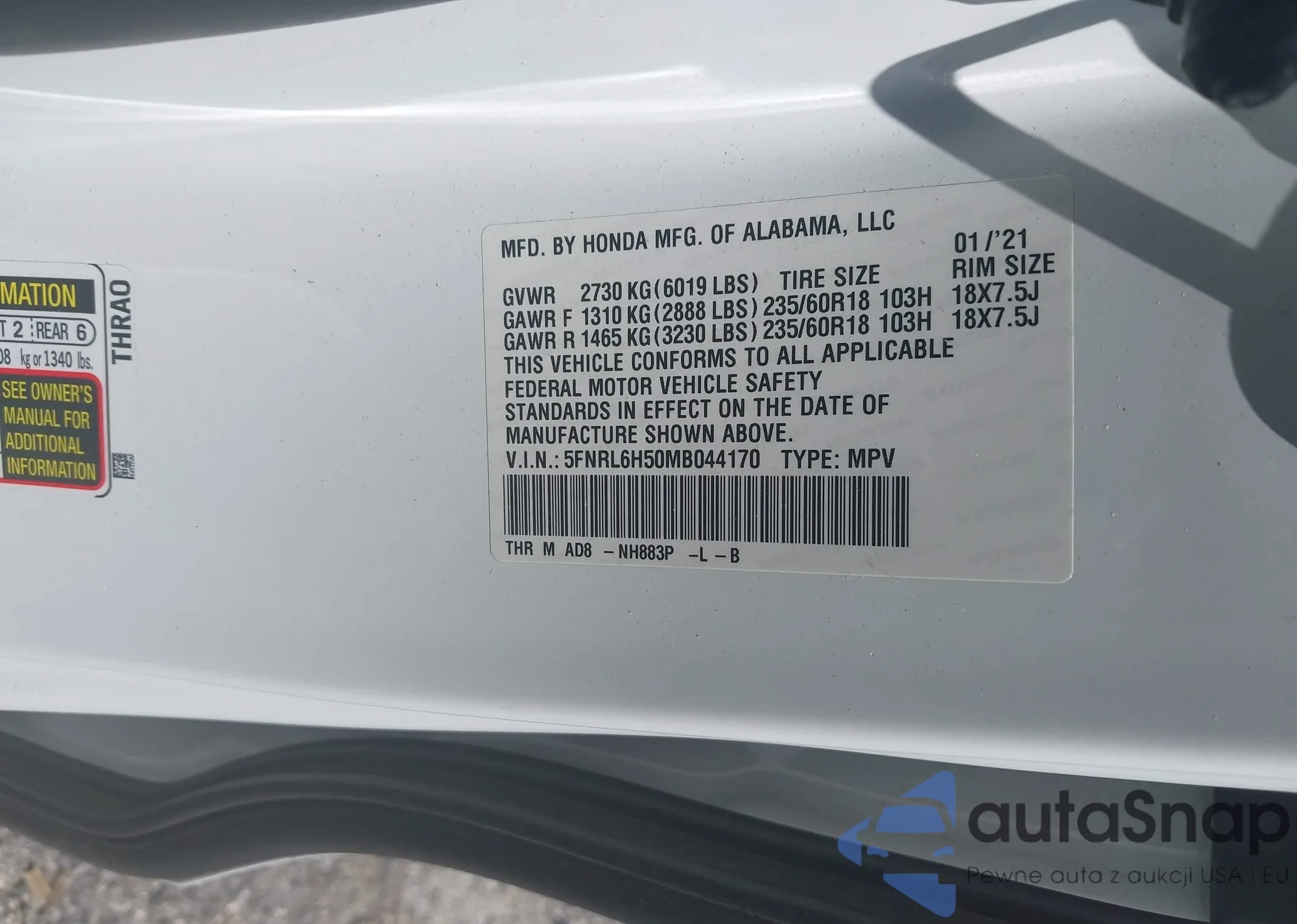• VIN: 5FNRL6H50MB044170