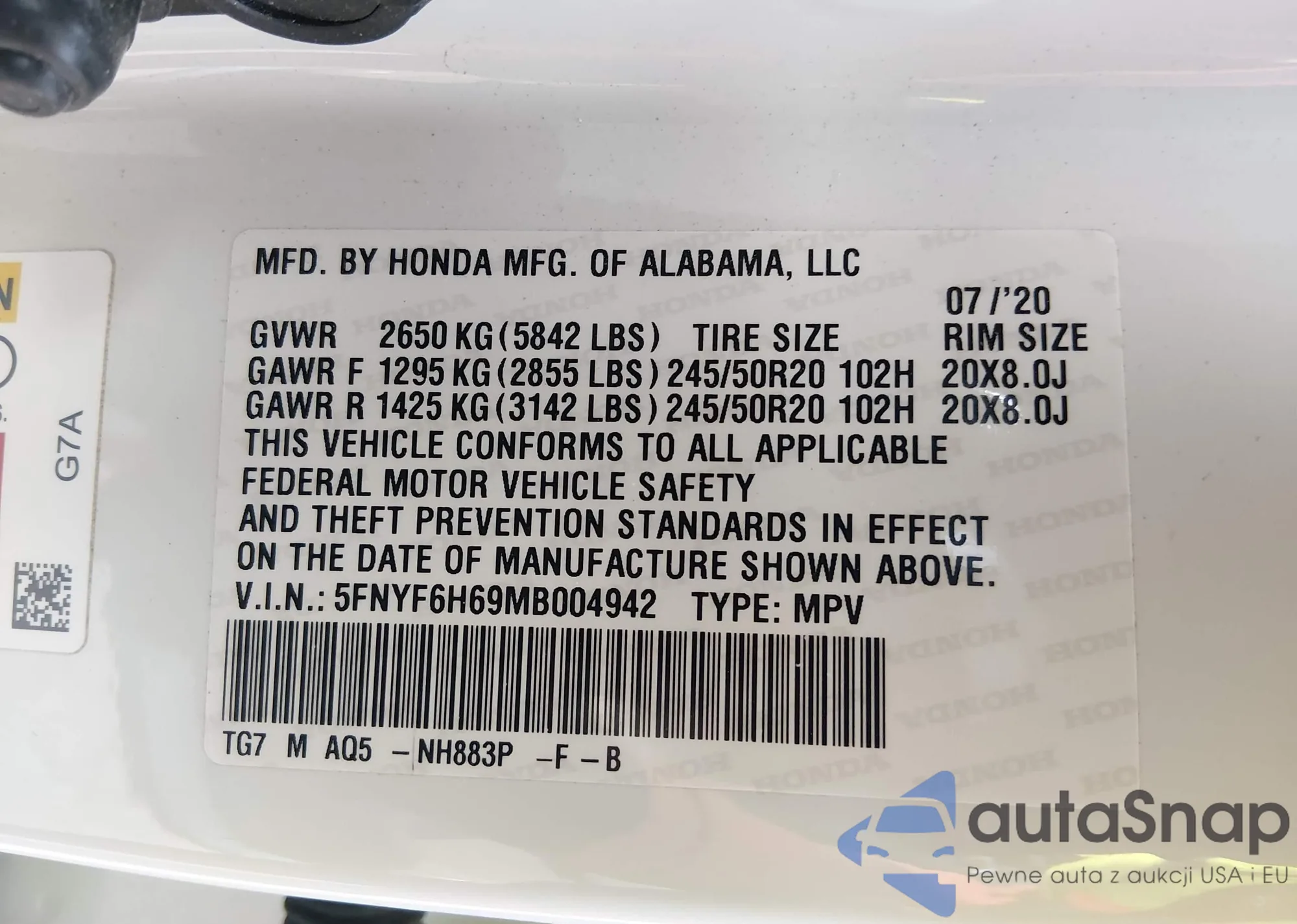 VIN: 5FNYF6H69MB004942