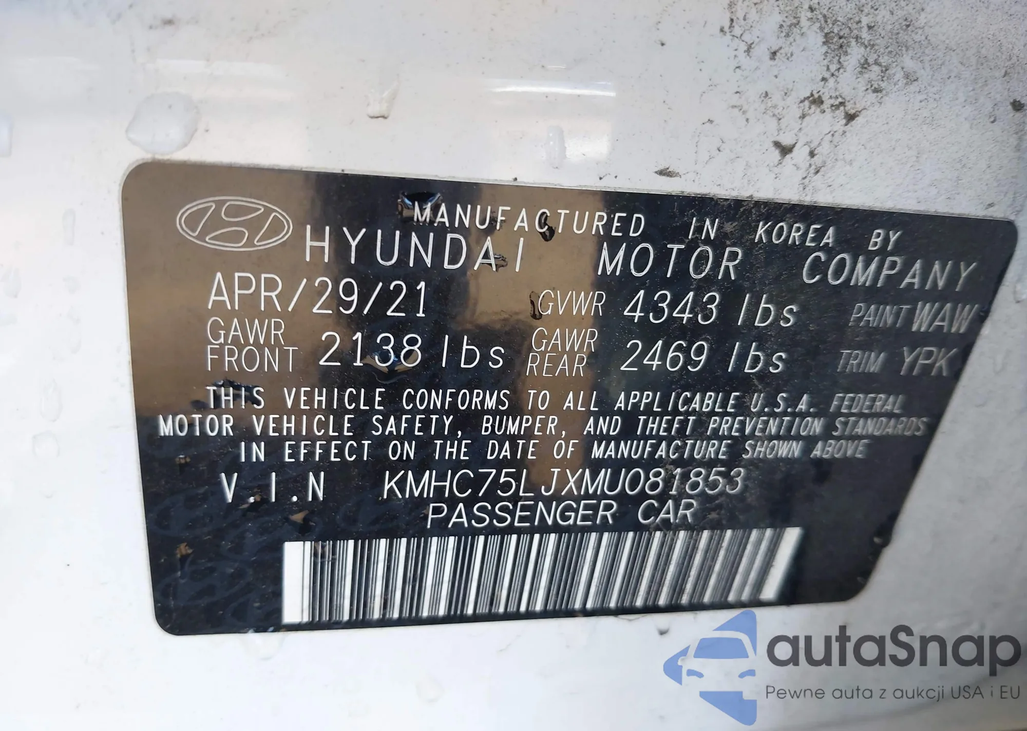 • VIN: KMHC75LJXMU081853