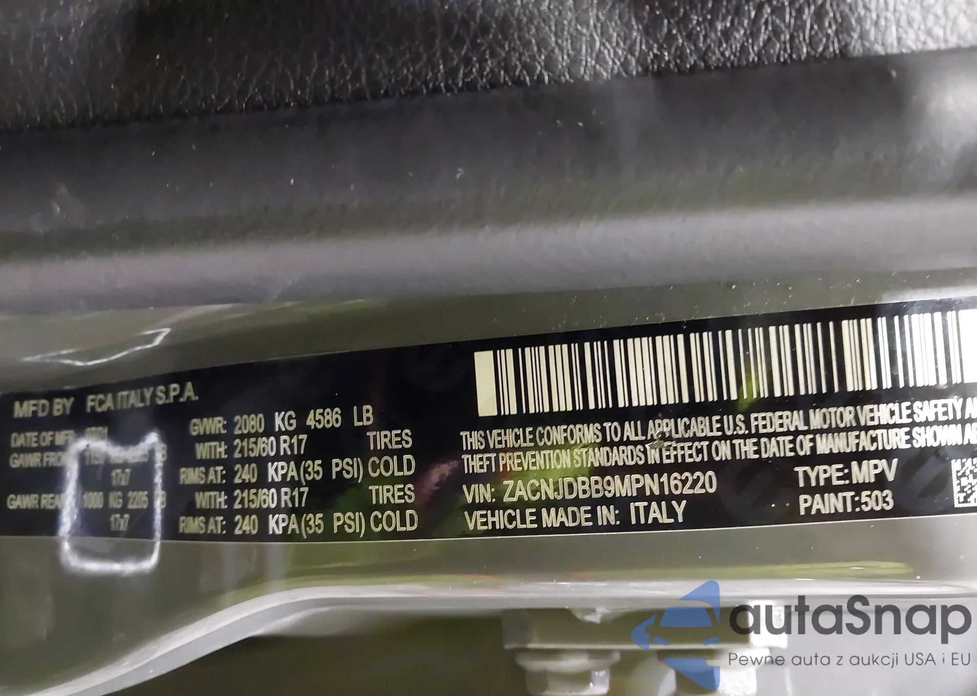 • VIN: ZACNJDBB9MPN16220
