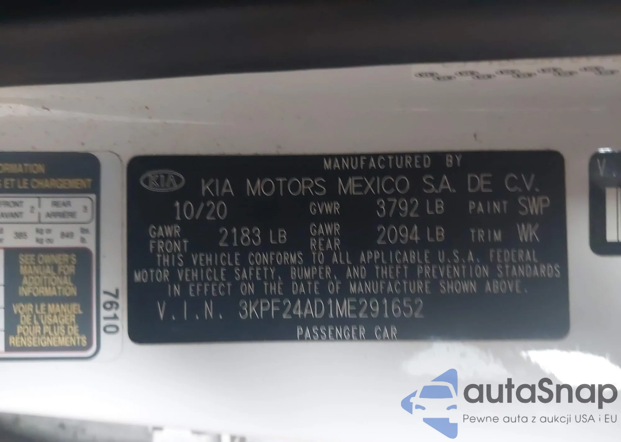 • VIN: 3KPF24AD1ME291652