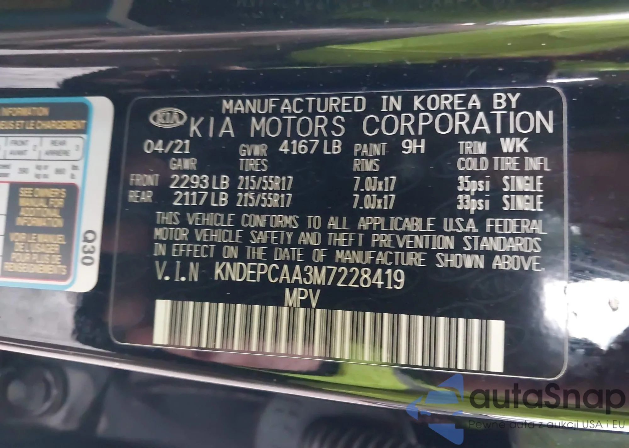 Samochód Kia Seltos 2021 (VIN KNDEPCAA3M7228419) nie był wcześniej licytowany. Dokumenty są czyste, przebieg odpowiada lub jest niższy niż średnia rynku. Sprzedaje go firma ubezpieczeniowa – polecamy zakup. Dostawa do portu zajmie ok. 6–8 tygodni.
