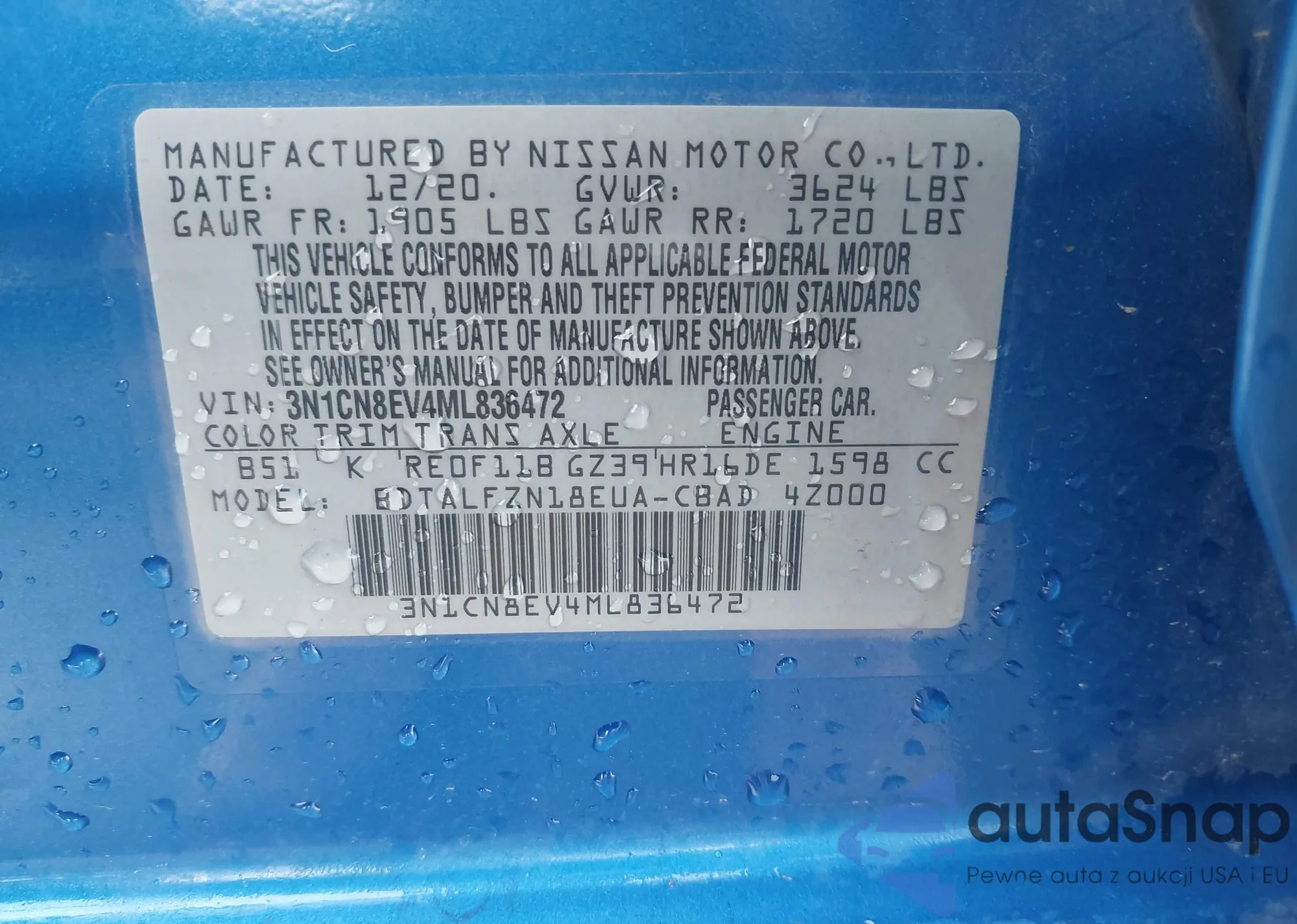 • VIN: 3N1CN8EV4ML836472