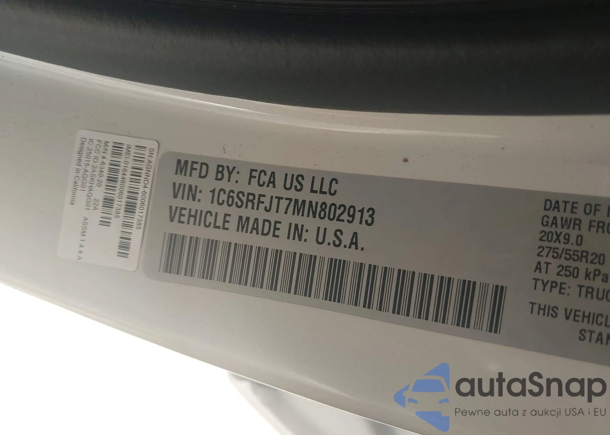 • VIN: 1C6SRFJT7MN802913