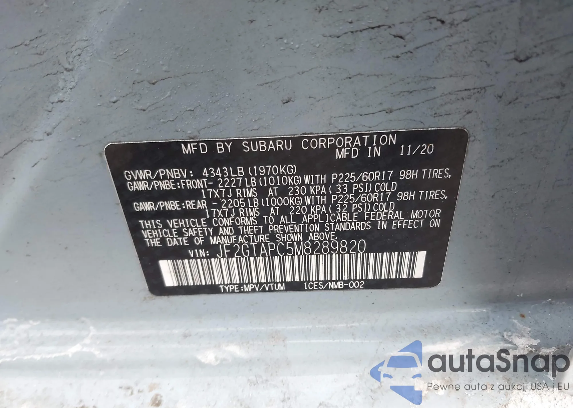 • VIN: JF2GTAPC5M8289820