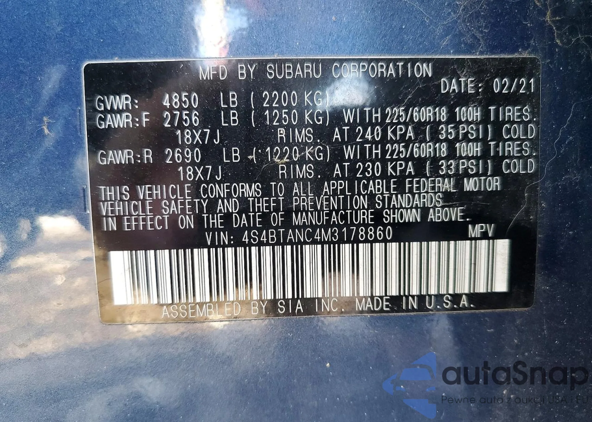 VIN: 4S4BTANC4M3178860