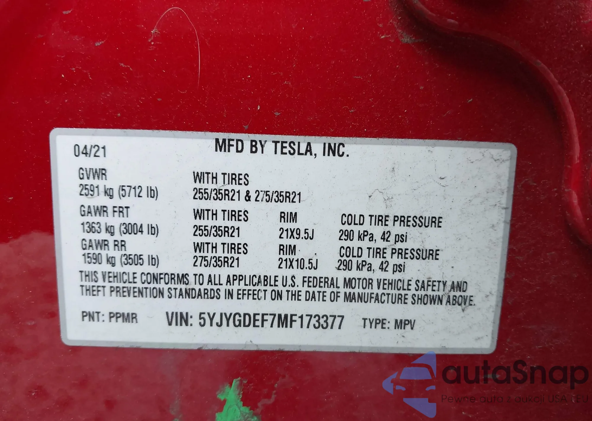 VIN: 5YJYGDEF7MF173377