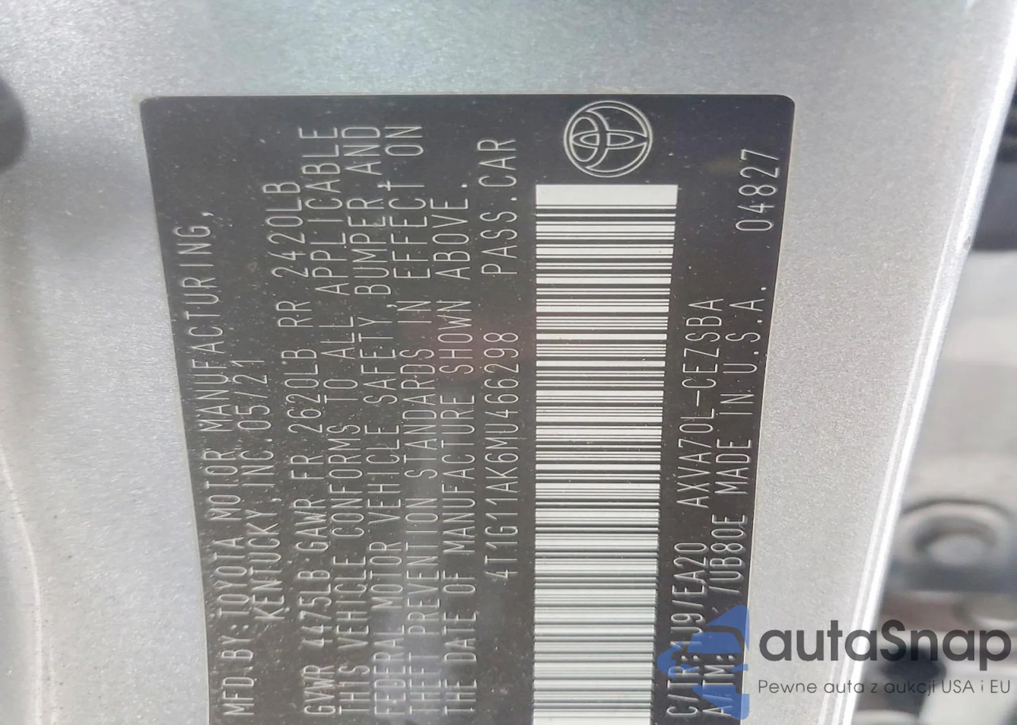 4T1G11AK6MU466298 COPART