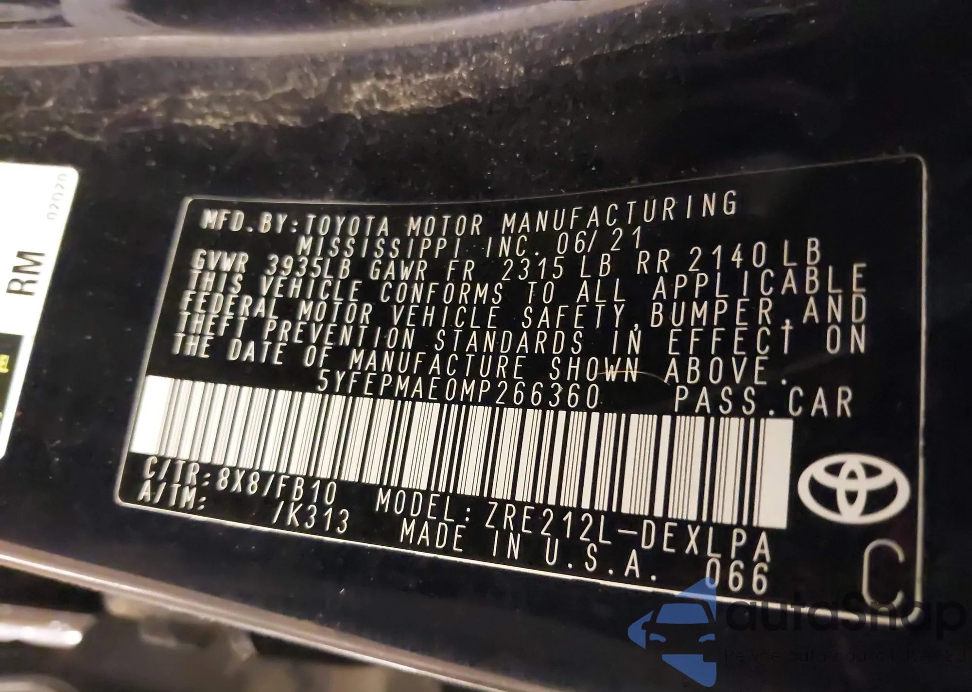 • VIN: 5YFEPMAE0MP266360