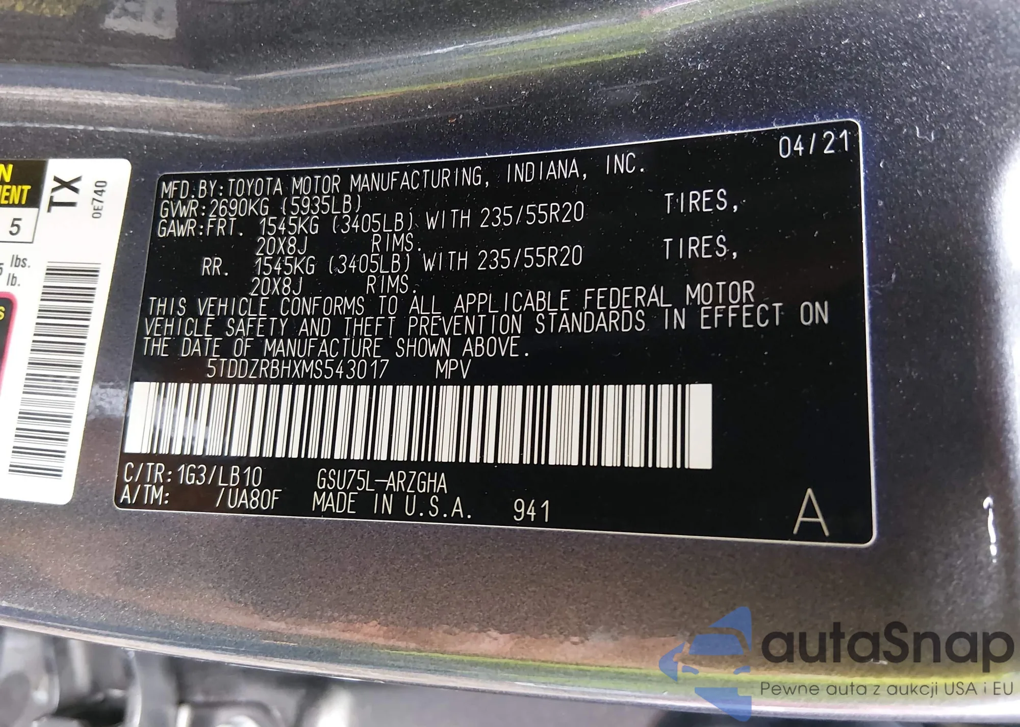5TDDZRBHXMS543017 IAAI